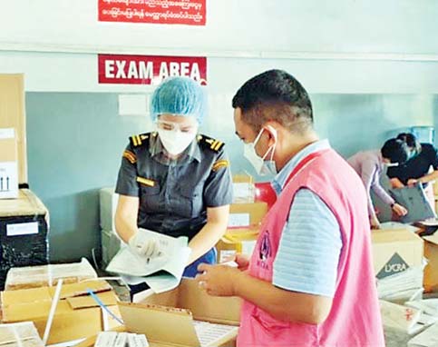 အကောက်ခွန်ဦးစီးဌာန အနေဖြင့် ကိုဗစ်-၁၉ ရောဂါ ကာကွယ်၊ ထိန်းချုပ်၊ ကုသရေးပစ္စည်းများ ကို ရေကြောင်း၊ ဆိပ်ကမ်း၊ နယ်စပ်ဂိတ်အသီးသီးမှ နေ့စဉ် လွယ်ကူချောမွေ့စွာ စစ်ဆေးထုတ် ပေးလျက်ရှိသည်။