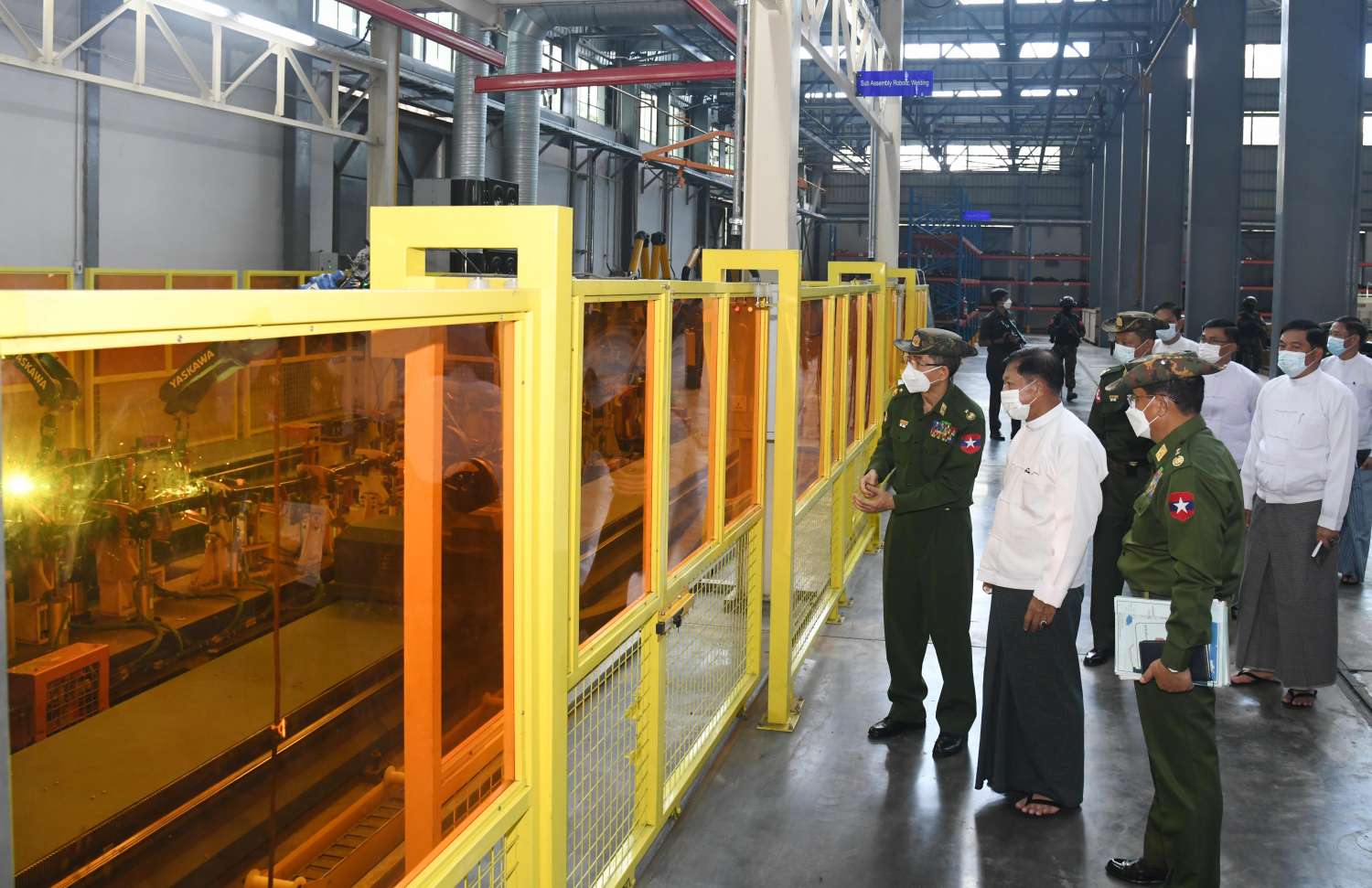ဆက်လက်ပြီး နိုင်ငံတော်စီမံအုပ်ချုပ်ရေးကောင်စီဥက္ကဋ္ဌ နိုင်ငံတော်ဝန်ကြီးချုပ်နှင့် အဖွဲ့ဝင်များသည် စက်ရုံမှ ထုတ်လုပ်ထားရှိသည့် မီးသတ်ယာဉ်၊ ရေသယ်ယာဉ်၊ ဆေးဖျန်းယာဉ်နှင့် ဆီသယ်ယာဉ်များအား ကြည့်ရှုစစ်ဆေးကြသည်။