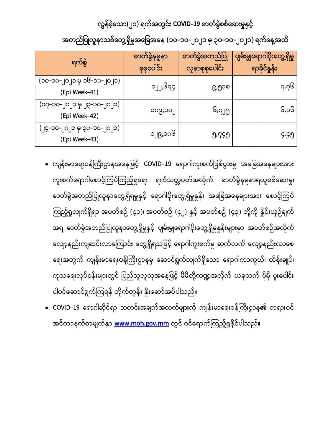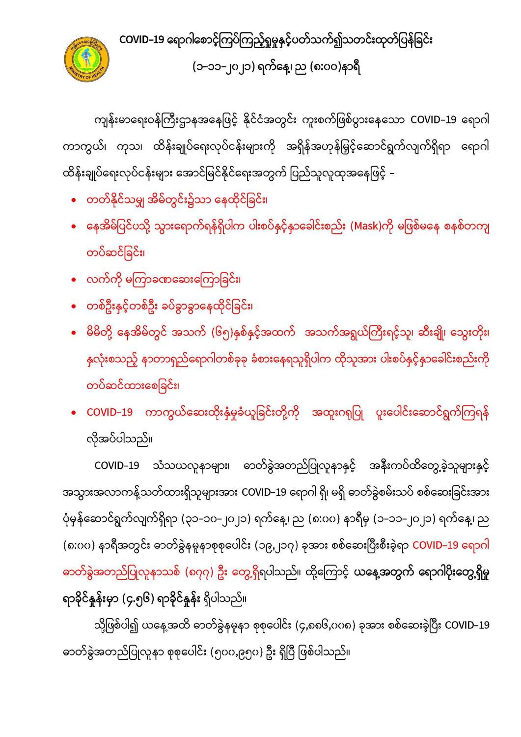 COVID-19 ရောဂါစောင့်ကြပ်ကြည့်ရှုမှုနှင့်ပတ်သက်၍သတင်းထုတ်ပြန်ခြင်း