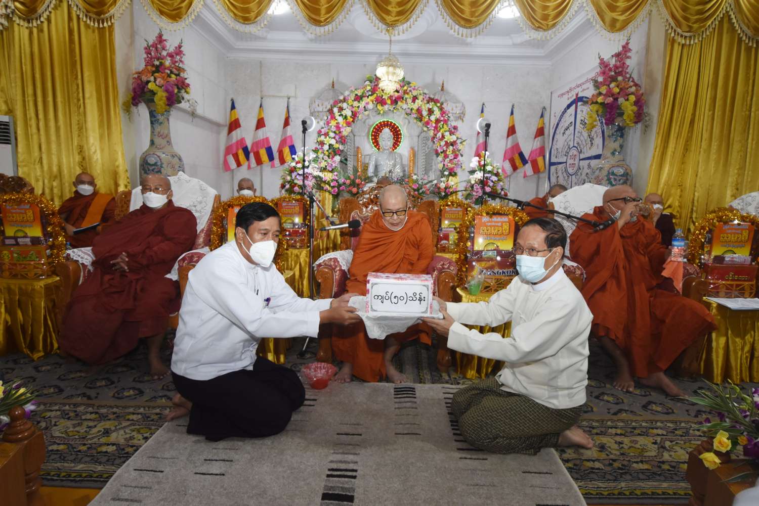 ဆက်လက်၍ ပြည်ထောင်စုဝန်ကြီးက ထေရဝါဒဗုဒ္ဓသာသနာပြုသြဝါဒါစရိယအဖွဲ့ ရန်ပုံငွေအတွက် ငွေကျပ်သိန်း ၅၀ ကို ပေးအပ်လှူဒါန်းပြီး ဆရာတော်သံဃာတော်များကို လှူဖွယ်ပစ္စည်းများ ဆက်ကပ်လှူဒါန်းပြီး လှူဒါန်းမှုအစုစုအတွက် ရေစက်သွန်းလောင်း အမျှပေးဝေသည်။