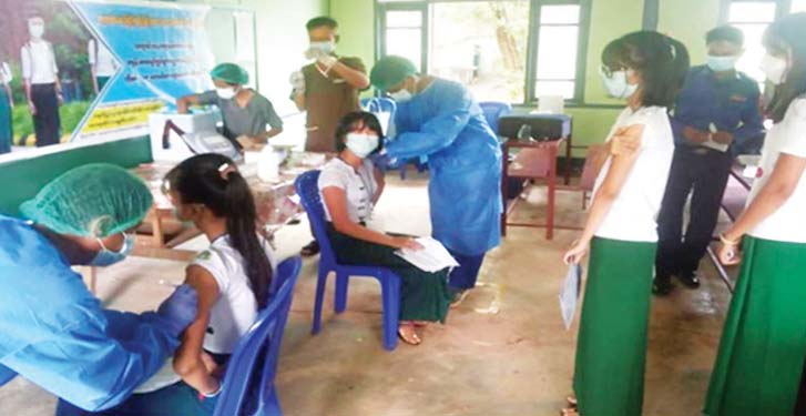 ထို့အတူ ကျောင်းသား၊ ကျောင်းသူများကိုလည်း ကိုဗစ်-၁၉ ရောဂါကာကွယ် ဆေးများ ထိုးနှံပေးလျက်ရှိရာ ယနေ့တွင် ရန်ကုန် တိုင်းဒေသကြီး၊ မြောက်ဉက္ကလာပ မြို့နယ်နှင့် သန်လျင်မြို့နယ်တို့၌ ကျောင်းသား၊ ကျောင်းသူ ၁၁၃၈ ဦး၊ ဧရာဝတီတိုင်းဒေသကြီး အတွင်းရှိ မြို့နယ်(၂၆) မြို့နယ်တို့၌ ကျောင်းသား၊ ကျောင်းသူ ၃၀၃၂ ဦးနှင့် ချင်းပြည်နယ်၊ ပလက်ဝမြို့နယ်၌ ကျောင်းသား၊ ကျောင်းသူ ၅၀၉ ဦးတို့ကို တပ်မတော်မှ ဆေးအဖွဲ့များက ပြည်သူ့ဆေးရုံများမှ ဆရာဝန်များ၊ သက်ဆိုင်ရာ ကျန်းမာရေး ဝန်ထမ်းများ၊ စေတနာ့ဝန်ထမ်း များနှင့် ပူးပေါင်း၍ ကိုဗစ်- ၁၉ ရောဂါ ကာကွယ်ဆေးထိုးနှံပေးခြင်းများ ဆောင်ရွက် ပေးသည်။