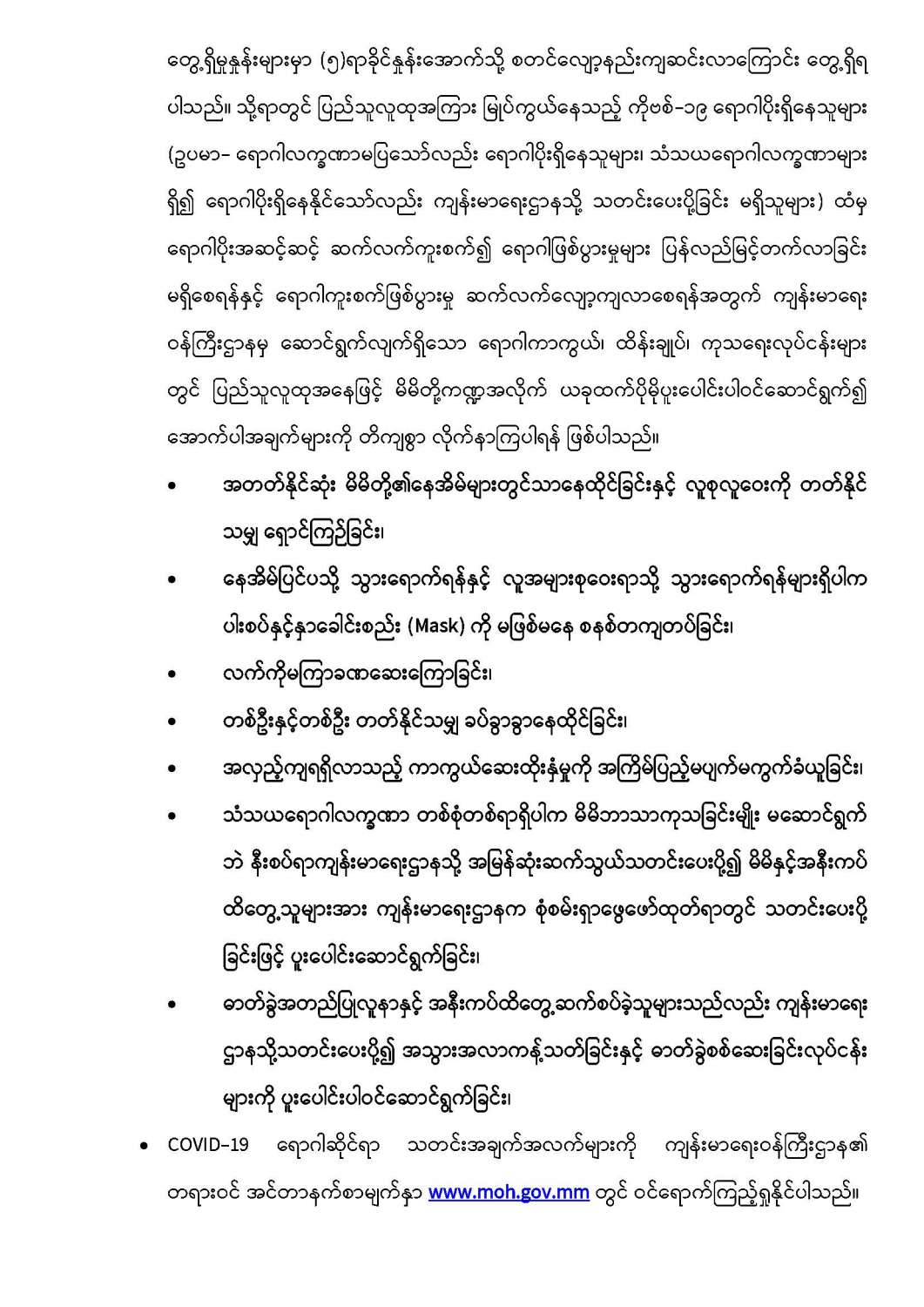 COVID-19 ရောဂါစောင့်ကြပ်ကြည့်ရှုမှုနှင့်ပတ်သက်၍ သတင်းထုတ်ပြန်ခြင်း