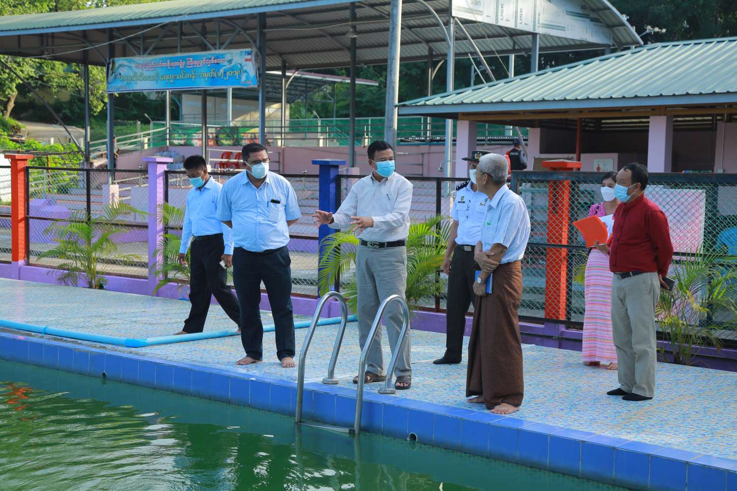 ဆက်လက်၍ ပြည်ထောင်စုဝန်ကြီးနှင့်အဖွဲ့သည် ဘားအံမြို့ရှိ ဇွဲကပင်ရေကူးကန်သို့ သွားရောက် ကြည့်ရှုစစ်ဆေးရာ ရေကူးလာရောက်သူများအတွက် အဆင်ပြေ လွယ်ကူစေရန် မျက်နှာစာ ဝင်ပေါက် တစ်ခု ထပ်မံဖောက်လုပ်ဆောင်ရွက်ရန်နှင့်ရေကူးကန် တည်ဆောက်ထားသော မြေနေရာကိုဌာနပိုင် မြေနေရာအဖြစ် သတ်မှတ်နိုင်ရေး ပြည်နယ်အစိုးရထံမှ အမြန်ဆုံးဆောင်ရွက်ရန် မှာကြားခဲ့ကြောင်း သိရသည်။