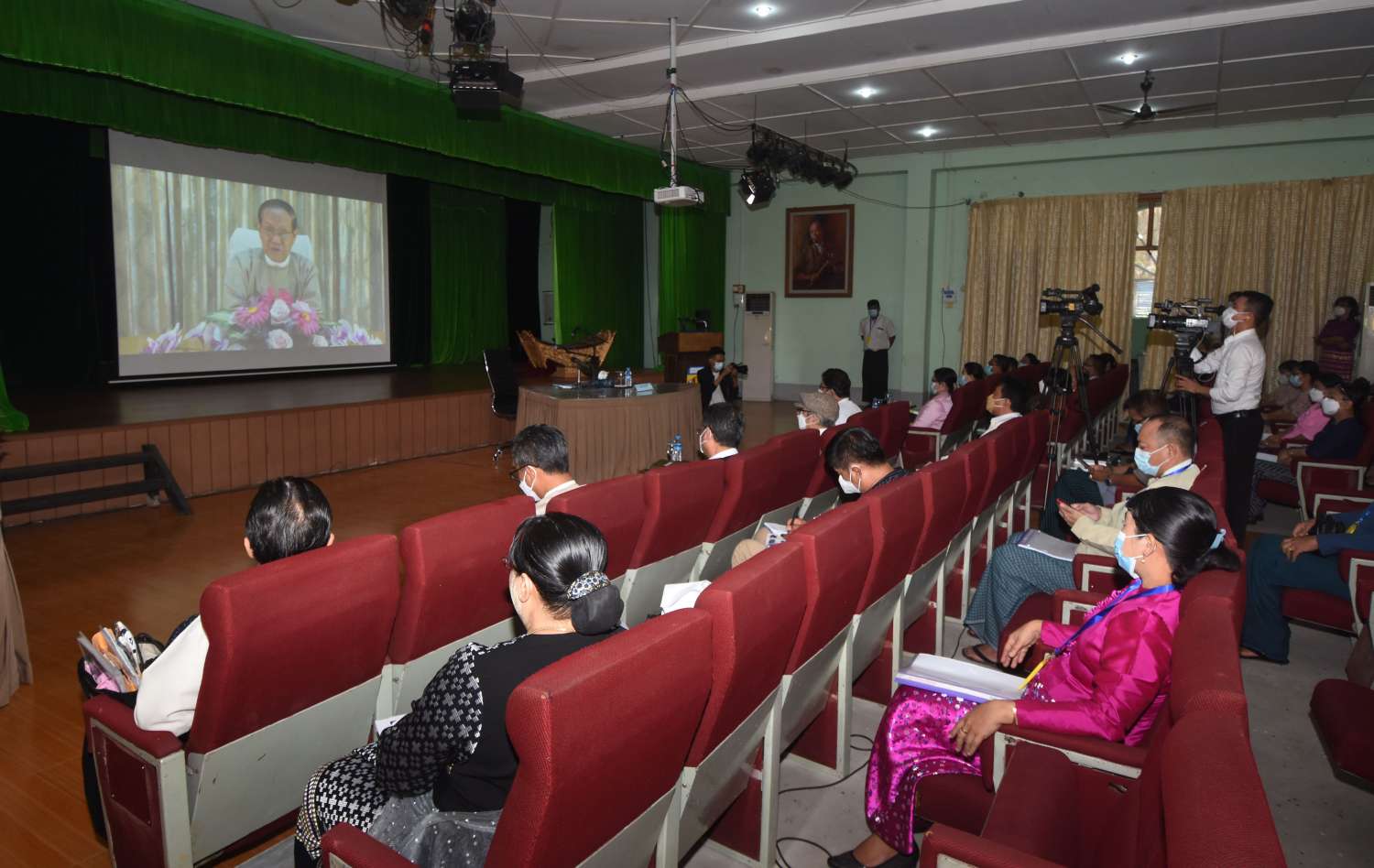 တက္ကသိုလ်၏ သုတေသနလုပ်ငန်းများ ဖွံ့ဖြိုးတိုးတက်ရေးနှင့် သင်ကြားမှုသင်ယူမှုများတွင် အထောက်အကူဖြစ်စေ နိုင်ရေးအတွက် သာသနာရေးနှင့် ယဉ်ကျေးမှုဝန်ကြီးဌာန၊ အမျိုးသား ယဉ်ကျေးမှုနှင့် အနုပညာတက္ကသိုလ် (ရန်ကုန်) ၂၀၂၀-၂၀၂၁ ပညာသင်နှစ်အတွက် ကျင်းပပြုလုပ်သည့် ထိန်းသိမ်းစဉ်လာအနုပညာ ဘာသာရပ်ဆိုင်ရာ သုတေသန စာတမ်းဖတ်ပွဲ ကို ယနေ့ နံနက် နာရီတွင် အဆိုပါ တက္ကသိုလ်၏ အနုပညာခန်းမ သရဖီဆောင်၌ ကိုဗစ်-၁၉ ရောဂါ ကာကွယ်ထိန်းချုပ်ရေးစည်းကမ်းချက်များနှင့်အညီ ကျင်းပသည်။