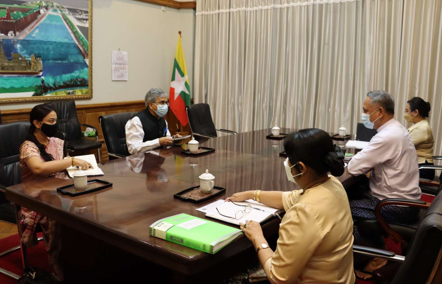 ရင်းနှီးမြှုပ်နှံမှုနှင့် နိုင်ငံခြားစီးပွားဆက်သွယ်ရေးဝန်ကြီးဌာန ပြည်ထောင်စုဝန်ကြီး ဦးအောင်နိုင်ဦးသည် မြန်မာနိုင်ငံဆိုင်ရာ အိန္ဒိယနိုင်ငံ သံအမတ်ကြီး H.E.Mr. Saurabh Kumar နှင့်အဖွဲ့အား ယနေ့မွန်းလွဲပိုင်းတွင် အဆိုပါဝန်ကြီးရုံး ဧည့်ခန်းမ၌ လက်ခံတွေ့ဆုံသည်။