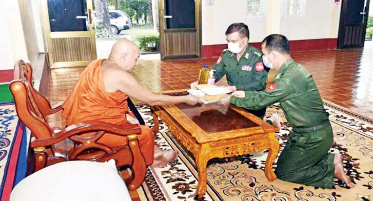 ကိုဗစ်-၁၉ ရောဂါ ကြိုတင်ကာကွယ်ရေးလုပ်ငန်းများ ဆောင်ရွက်နေသည့်ကာလအတွင်း ဆွမ်းကိစ္စရပ်များ အဆင်ပြေစေရန် ရည်ရွယ်၍ တပ်မတော် (ကြည်း၊ ရေ၊ လေ) အရာရှိ၊ စစ်သည်၊ အရာထမ်း၊ အမှုထမ်းများနှင့် စေတနာရှင်အလှူရှင်များက မြို့နယ်အသီးသီးရှိ ဘုန်းတော်ကြီး ကျောင်းများ၊ သာသနာနွယ်ဝင် သီလရှင်ကျောင်းများနှင့် ဘာသာရေးကျောင်းများသို့ ဆွမ်း ဆန်တော်၊ ဆီ၊ ဆား၊ ပဲ အမယ်လေးမျိုးနှင့် လှူဖွယ်ပစ္စည်းများ လှူဒါန်းခြင်း၊ နေ့ဆွမ်းများ ဆက်ကပ်လှူဒါန်းခြင်းနှင့် ကျန်းမာရေးစစ်ဆေးပေးခြင်းများကို ဆောင်ရွက်လျက်ရှိသည်။
