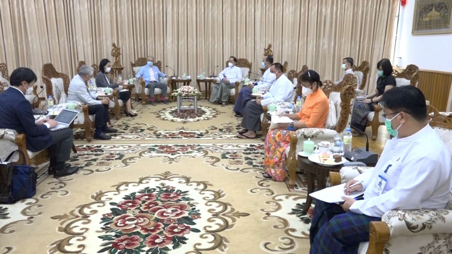 တွေ့ဆုံစဉ် The Nippon Foundation မှ မြန်မာနိုင်ငံသို့ ကိုဗစ်-၁၉ ရောဂါနှင့်ပတ်သက်၍ လူသားချင်း စာနာထောက်ထားမှု အကူအညီများ ပေးအပ်မည့်ကိစ္စ၊ ကိုဗစ်-၁၉ ရောဂါကာ ကွယ်၊ ထိန်းချုပ်၊ ကုသရေးလုပ်ငန်းများတွင် ဝန်ကြီးဌာနမှ လိုအပ်မည့် ဆေးနှင့်ဆေး ပစ္စည်း များ၊ ဆေးရုံ၊ ဆေးခန်းများ ဆောက်လုပ်လှူဒါန်းနိုင်မည့်ကိစ္စ၊ ဂျပန်နိုင်ငံမှ မြန်မာနိုင်ငံအတွက် ကိုဗစ်-၁၉ ရောဂါ ကာကွယ်ဆေးများ လှူဒါန်းပေးအပ်နိုင်မည့်အခြေ အနေများ၊ ဂျပန်-မြန်မာ နှစ်နိုင်ငံဆက်ဆံရေး ပိုမိုတိုးတက်ကောင်းမွန်ရန် ဆောင်ရွက်နိုင်မည့် ကိစ္စရပ်များ၊ ဂျပန်နိုင်ငံ၏ အကူအညီဖြင့် ဆောင်ရွက်နေသည့် ဆေးရုံဆောက်လုပ်ရေးနှင့် အဆင့်မြှင့်တင်ရေး လုပ်ငန်းများ ပြန်လည်ဆောင်ရွက်ပေးနိုင်ရေးကိစ္စများကို ဆွေးနွေးခဲ့ကြကြောင်း သိရသည်။