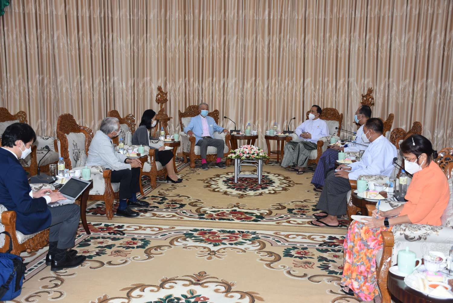 ကျန်းမာရေးဝန်ကြီးဌာန ပြည်ထောင်စုဝန်ကြီး ဒေါက်တာသက်ခိုင်ဝင်းနှင့် ဂျပန်နိုင်ငံ၊ The Nippon Foundation အဖွဲ့ဥက္ကဋ္ဌ Mr. Yohei Sasakawa နှင့် အဖွဲ့သည် ယနေ့ ညနေပိုင်းတွင် ကျန်းမာရေးဝန်ကြီးဌာန၊ ဧည့်ခန်းမ၌ တွေ့ဆုံကြသည်။