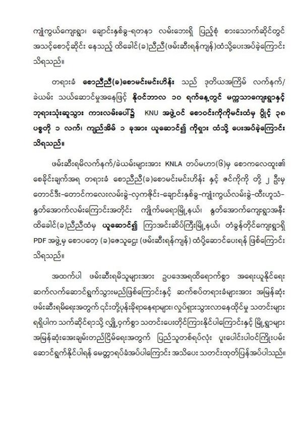 နိုင်ငံတော်သမ္မတ၏ မိန့်ခွန်းလမ်းညွှန်ချက်အပေါ် သက်ဆိုင်ရာလုပ်ငန်းဌာနအလိုက် ဆောင်ရွက်မည့် အခြေအနေများ ရှင်းလင်း