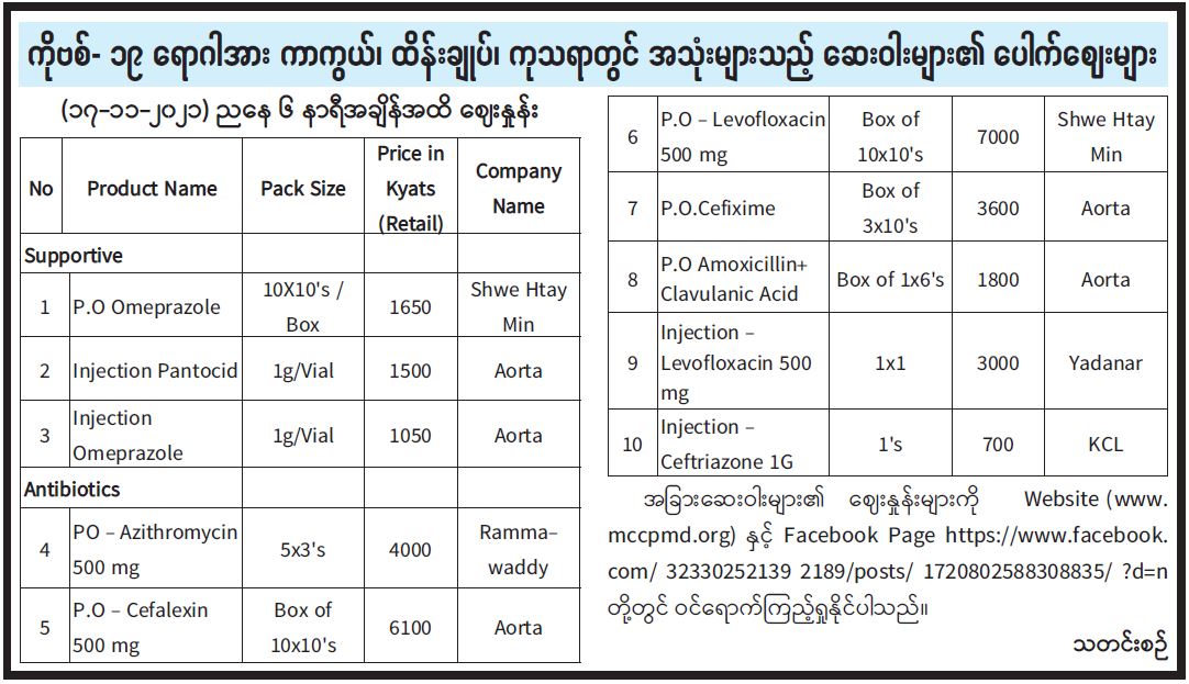 ကိုဗစ်-၁၉ ရောဂါ အား ကာကွယ်၊ထိန်းချုပ်၊ ကုသရာတွင် အသုံးများသည့် ဆေးဝါးများ၏ ပေါက်စေ◌ျးများ