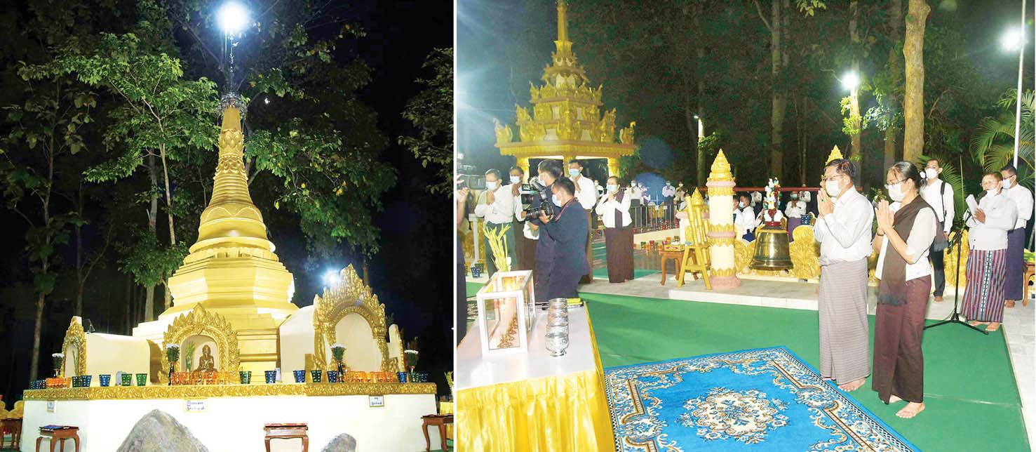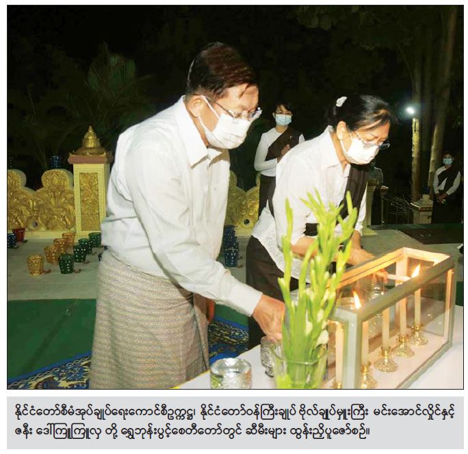 တန်ဆောင်တိုင်မီးထွန်းတော်များကို တိုင်းဒေသကြီးနှင့် ပြည်နယ်အသီးသီးရှိ ဘုရား၊ စေတီ၊ ပုထိုးများ၌ ကိုဗစ်- ၁၉ စည်းမျဉ်း၊ စည်းကမ်းများနှင့်အညီ ကျင်းပပြုလုပ်ကြပြီး နေပြည်တော်ကောင်စီနယ်မြေ၊ ဇေယျာသီရိမြို့နယ်အတွင်းရှိ ရွှေဘုန်းပွင့် စေတီတော် မြတ်ကြီးတွင် ဆီမီးတစ်ထောင် ထွန်းညှိပူဇော်ပွဲ ကျင်းပပြုလုပ်ရာ နိုင်ငံတော်စီမံအုပ်ချုပ်ရေး ကောင်စီဉက္ကဋ္ဌ၊ နိုင်ငံတော် ဝန်ကြီးချုပ် ဗိုလ်ချုပ်မှူးကြီးမင်းအောင်လှိုင်နှင့်ဇနီး ဒေါ်ကြူကြူလှ၊ နိုင်ငံတော် စီမံအုပ်ချုပ်ရေးကောင်စီ ဒုတိယဉက္ကဋ္ဌ၊ ဒုတိယ ဝန်ကြီးချုပ် ဒုတိယဗိုလ်ချုပ်မှူးကြီး စိုးဝင်းနှင့် ဇနီး၊ အဖွဲ့ဝင်များ၊ တပ်မတော် (ကြည်း၊ ရေ၊ လေ) မိသားစုများက တက်ရောက် မီးထွန်းညှိ ပူဇော်ကြသည်။