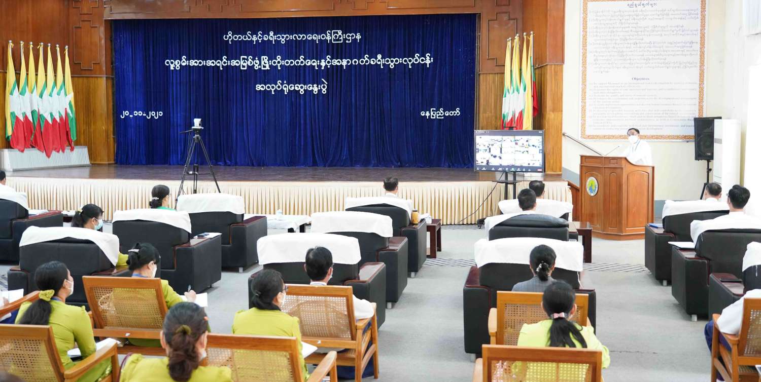 ဆက်လက်၍ ဟိုတယ်နှင့် ခရီးသွားလာရေးဝန်ကြီးဌာနမှ ညွှန်ကြားရေးမှူး ဦးနောင်နောင်လင်းအောင်နှင့် ညွှန်ကြားရေးမှူး ဦးအောင်ဇော်မိုးတို့က ဝန်ကြီးဌာနမှ လူ့စွမ်းအား အရင်းအမြစ်ဖွံ့ဖြိုးတိုးတက်ရေး ဆောင်ရွက်မှုများနှင့် ကိုဗစ်−၁၉ ကပ်ရောဂါ ကြောင့် ခရီးသွားလုပ်ငန်း ထိခိုက်မှုအခြေအနေများနှင့် ဆက်လက်ဆောင်ရွက်သင့်သော လုပ်ငန်းဆိုင်ရာများကို နိုင်ငံတကာအဖွဲ့ အစည်းများ၏ သုတေသနစာတမ်းများနှင့် ယှဉ်တွဲဖော်ပြကာ ဆွေးနွေးတင်ပြကြသည်။