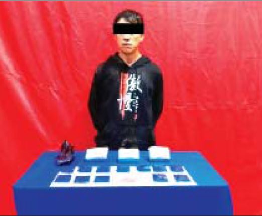 ယင်းနေ့ ညနေ ၅ နာရီခွဲတွင် မူးယစ်ဆေးဝါးတားဆီးနှိမ်နင်းရေး ရဲတပ်ဖွဲ့မှ တပ်ဖွဲ့ဝင်များ ပါဝင်သော ပူးပေါင်းအဖွဲ့သည် ကွမ်းလုံမြို့နယ် တာပန်ချောက်ကျေးရွာအနီးတွင်လောဝူအား မသင်္ကာဖွယ်တွေ့ရှိသဖြင့် စစ်ဆေးရှာဖွေရာ ဘိန်းဖြူ သုည ဒသမ ၀၃ ကီလိုနှင့် စိတ်ကြွရူးသွပ်