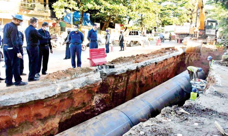 ရန်ကုန်တိုင်းဒေသကြီး စည်ပင် သာယာရေးဝန်ကြီး ရန်ကုန်မြို့ တော် စည်ပင်သာယာရေး ကော်မတီ ဥက္ကဋ္ဌ(မြို့တော်ဝန်) ဦးဗိုလ်ဌေးသည် ယနေ့နံနက်ပိုင်း တွင် မှော်ဘီမြို့နယ် ဆန်စပါး သုတေသနဌာန မြေနေရာဝင်း အတွင်း ဆောင်ရွက်နေသော လှိုင်မြစ်-လှော်ကား ရေအားဖြည့် စီမံကိန်းလုပ်ငန်းခွင်၌ မြေသားအကြို အနည်ထိုင်ကန်တည် ဆောက်ပြီးစီးမှု၊ ရေဝင်မြောင်း တူးဖော်နေမှု၊ ရေတွန်းစက်ရုံ Basement Wall သံချည်သံကွေး လုပ်ငန်းနှင့် ရေဂိတ်တံခါး Base Slab Lean Concrete လောင်းခြင်း လုပ်ငန်းဆောင်ရွက်နေမှု၊ ရေတွန်း စက်ရုံဓာတ်အားခွဲရုံ တည်ဆောက် ပြီးစီးမှု၊ ပြည်လမ်းတစ်လျှောက် 1600 mm HDPE ပိုက်ဆက်သွယ် ခြင်းလုပ်ငန်းနှင့် ဖူးကြီး-လှော်ကား ၆၀ လက်မ ကွန်ကရစ်ပိုက်သို့ ဆက်သွယ်ရန် လုပ်ငန်းဆောင် ရွက်နေမှုများကို ကြည့်ရှုစစ်ဆေးပြီး လိုအပ်သည်များကိုမှာကြား ဖြည့်ဆည်း ဆောင်ရွက်ပေးသည်။