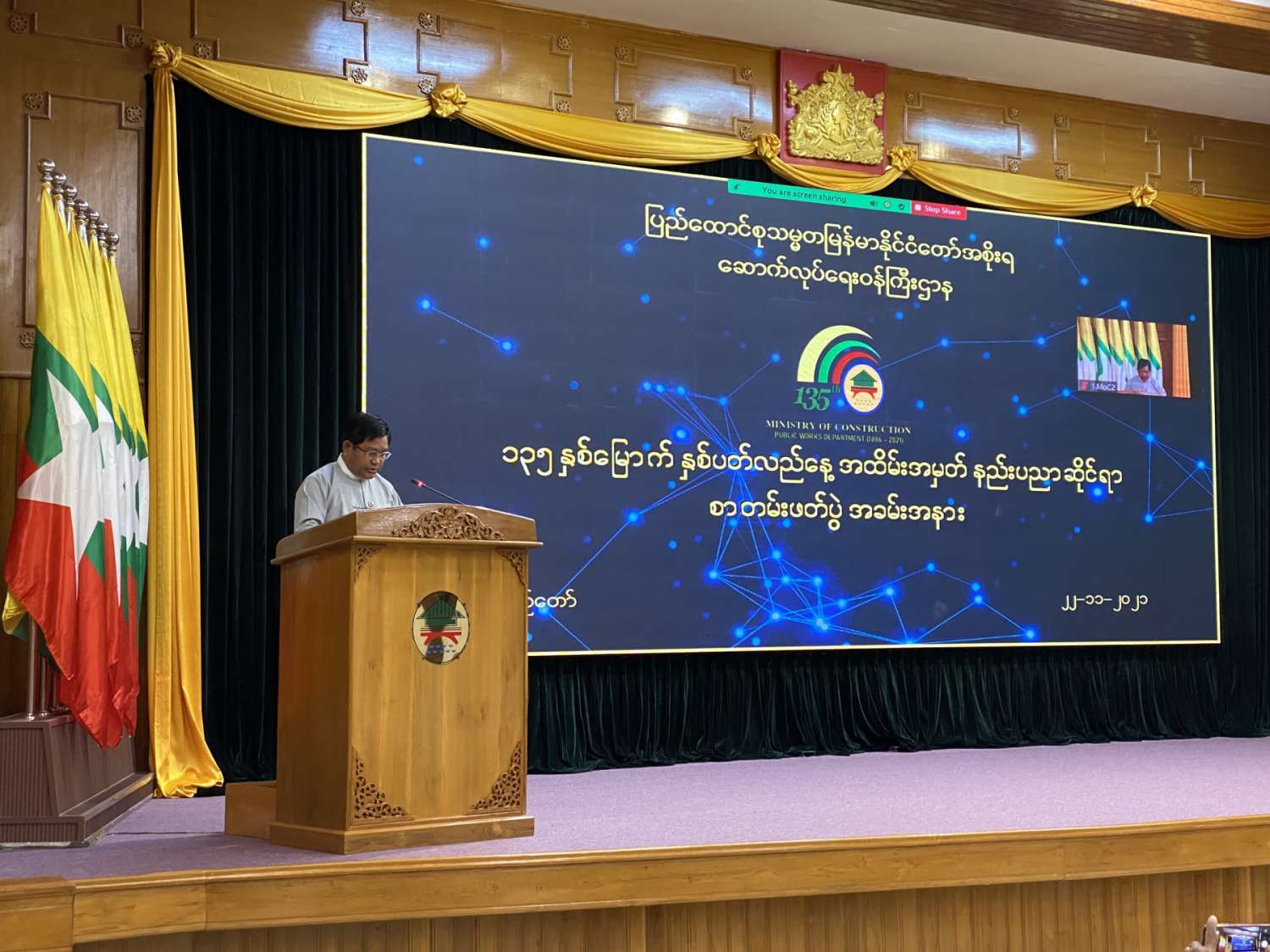 ဆောက်လုပ်ရေးဝန်ကြီးဌာန Public Works Department ၏ (၁၃၅)နှစ်မြောက် နှစ်ပတ်လည်နေ့ အထိမ်းအမှတ်ကို ကြိုဆိုသောအားဖြင့် နည်းပညာဆိုင်ရာ စာတမ်းဖတ်ပွဲ အခမ်းအနားကို ယနေ့နံနက် ၉ နာရီခွဲတွင် နေပြည်တော်ရှိ ဆောက်လုပ်ရေးဝန်ကြီးဌာန စုဝေးခန်းမဆောင်၌ ကျန်းမာရေးဝန်ကြီးဌာန၏ ကိုဗစ်-၁၉ ညွှန်ကြားချက်များနှင့်အညီ ကျင်းပသည်။