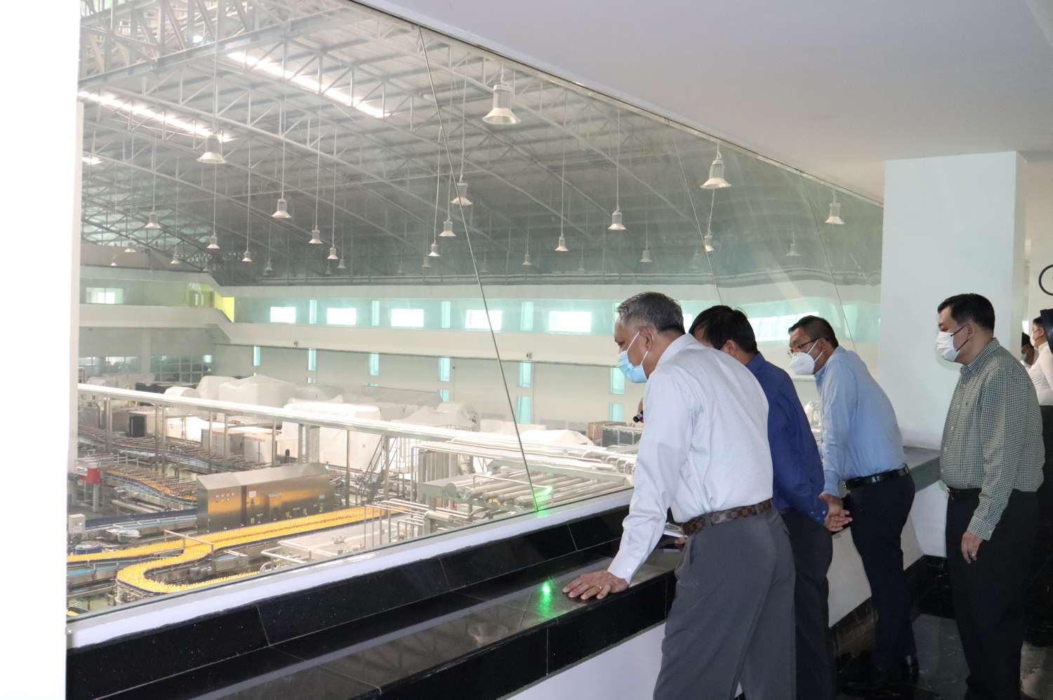 ထို့နောက် ပြည်ထောင်စုဝန်ကြီးသည် စဉ့်ကိုင်မြို့နယ်၊ မြောက်ကိုင်းကျေးရွာအုပ်စုရှိ မြန်မာနိုင်ငံရင်းနှီးမြှုပ်နှံမှု ကော်မရှင်၏ ခွင့်ပြုမိန့်ဖြင့် မြန်မာနိုင်ငံသားရင်းနှီးမြှုပ်နှံမှုလုပ်ငန်း ဖြစ်သော နို့၊ ပဲနို့၊ အချိုရည်အမျိုးမျိုးနှင့် ရေသန့် ထုတ်လုပ်ဖြန့်ဖြူး ရောင်းချခြင်းလုပ်ငန်း ဆောင်ရွက်နေသည့် Europe & Asia Beverages Company Limited သို့ရောက်ရှိခဲ့ပြီး ကုမ္ပဏီ၏ Executive Director ဉီးဇော်ထွန်းနိုင် က စက်ရုံလုပ်ငန်းလည်ပတ်နေမှု ၊ ပြည်တွင်း ထုတ်လုပ်မှုမြှင့်တင်ရေး၊ ဈေးကွက်တိုးချဲ့ရရှိရေး၊ လုပ်ငန်းတိုးချဲ့ဆောင် ရွက်သွားမည့် ကိစ္စတို့နှင့် စပ်လျဉ်း၍ ဆွေးနွေးခဲ့တင်ပြရာ ပြည်ထောင်စုဝန်ကြီးက လုပ်ငန်းနှင့် စပ်လျဉ်း၍ လိုအပ်သည်များ အကြံပြုညှိနှိုင်းဆောင်ရွက် ပေးခဲ့ပြီး စက်ရုံအတွင်း လှည့်လည်ကြည့်ရှု အားပေးသည်။
