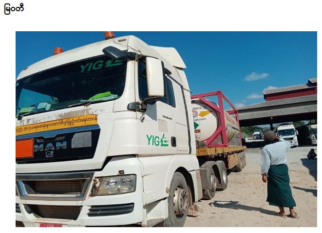 အောက်စီဂျင်အရည်(Bowser)ယာဉ် (၁) စီးမှာ မြဝတီကုန်သွယ်ရေးဇုန်မှ ရန်ကုန်မြို့သို့ ဖြစ်ကြောင်း သိရသည်။