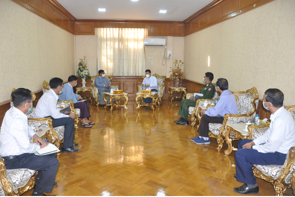 ညနေပိုင်းတွင် ပြည်ထောင်စုဝန်ကြီးသည် ပုသိမ်မြို့ရှိ ဧရာဝတီတိုင်းဒေသကြီး အစိုးရအဖွဲ့ရုံး၌ ဧရာဝတီတိုင်းဒေသကြီးအစိုးရအဖွဲ့ ဝန်ကြီးချုပ် ဦးတင်မောင်ဝင်းနှင့် တိုင်းဒေသကြီးအစိုးရအဖွဲ့ဝင် ဝန်ကြီးများနှင့် တွေ့ဆုံ၍ ဧရာဝတီတိုင်းဒေသကြီး အတွင်းရှိ စက်မှုဝန်ကြီးဌာနမှ ဦးစီးဌာနနှင့် စက်ရုံများ၏ လုပ်ငန်းလည်ပတ် အကောင်အထည်ဖော် ဆောင်ရွက်နေမှုအခြေအနေနှင့် ကုန်ကြမ်းလို အပ်မှုအခြေအနေ၊ လူ့စွမ်းအားအရင်းအမြစ် ဖွံ့ဖြိုးတိုးတက်ရေးအတွက် စီမံဆောင်ရွက်လျက်ရှိသည့် အခြေအနေတို့ကို ဆွေးနွေးပြောကြားရာ ဧရာဝတီတိုင်း ဒေသကြီး ဝန်ကြီးချုပ်က စက်ရုံအလုပ်ရုံများ ပြန်လည်လည်ပတ်နိုင်ရေးအတွက် အစွမ်းကုန်ကူညီ ဖြည့်ဆည်းပေးမည်ဖြစ်ကြောင်း ဆွေးနွေး ပြောကြားသည်။