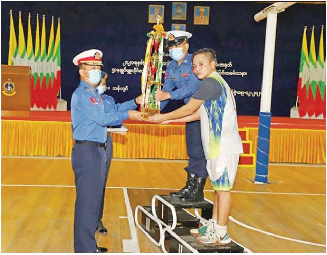 (၇၄) နှစ်မြောက် တပ်မတော် (ရေ) နှစ်ပတ်လည်နေ့ အထိမ်းအမှတ် ရေတပ်လေ့ကျင့်ရေးဌာနချုပ်၊ ဌာနချုပ်မှူးဒိုင်း ဘတ်စကက်ဘောပြိုင်ပွဲ ဗိုလ်လုပွဲနှင့် ဆုပေးပွဲကို ယနေ့နံနက်ပိုင်းတွင် သန်လျင်တပ်နယ်ခန်းမ၌ ပြုလုပ်ရာ ရေတပ်လေ့ကျင့်ရေး ဌာနချုပ်၊ ဌာနချုပ်မှူးနှင့် အရာရှိ၊ စစ်သည်၊ မိသားစုများ၊ ဒိုင်အဖွဲ့ဝင်များ၊ ပြိုင်ပွဲဝင်အားကစား သမားများနှင့် အားကစားဝါသနာရှင်များ တက်ရောက်ကြသည်။