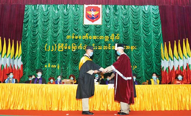 တပ်မတော်ဆေးတက္ကသိုလ်၏(၂၂)ကြိမ်မြောက် ဘွဲ့နှင်းသဘင်အခမ်းအနား ကို ယနေ့နေ့လယ်ပိုင်းတွင် ရန်ကုန်တိုင်းဒေသကြီး၊ မင်္ဂလာဒုံမြို့နယ်ရှိ တပ်မတော် ဆေးတက္ကသိုလ် ဘွဲ့နှင်းသဘင်ခန်းမ၌ ကျင်းပရာ တပ်မတော်ဆေးတက္ကသိုလ် ခေတ္တကျောင်းအုပ်ကြီး ဗိုလ်မှူးကြီးဇော်မန်းဖြိုး၊ တပ်မတော် ဆေး တက္ကသိုလ် ခေတ္တပါမောက္ခချုပ် ဒုတိယဗိုလ်မှူးကြီး ခွန်ထွန်းလှိုင် နှင့် တပ်မတော်ဆေးတက္က သိုလ်မှ ပညာရေးအဖွဲ့ဝင်များ တက်ရောက်ကြသည်။