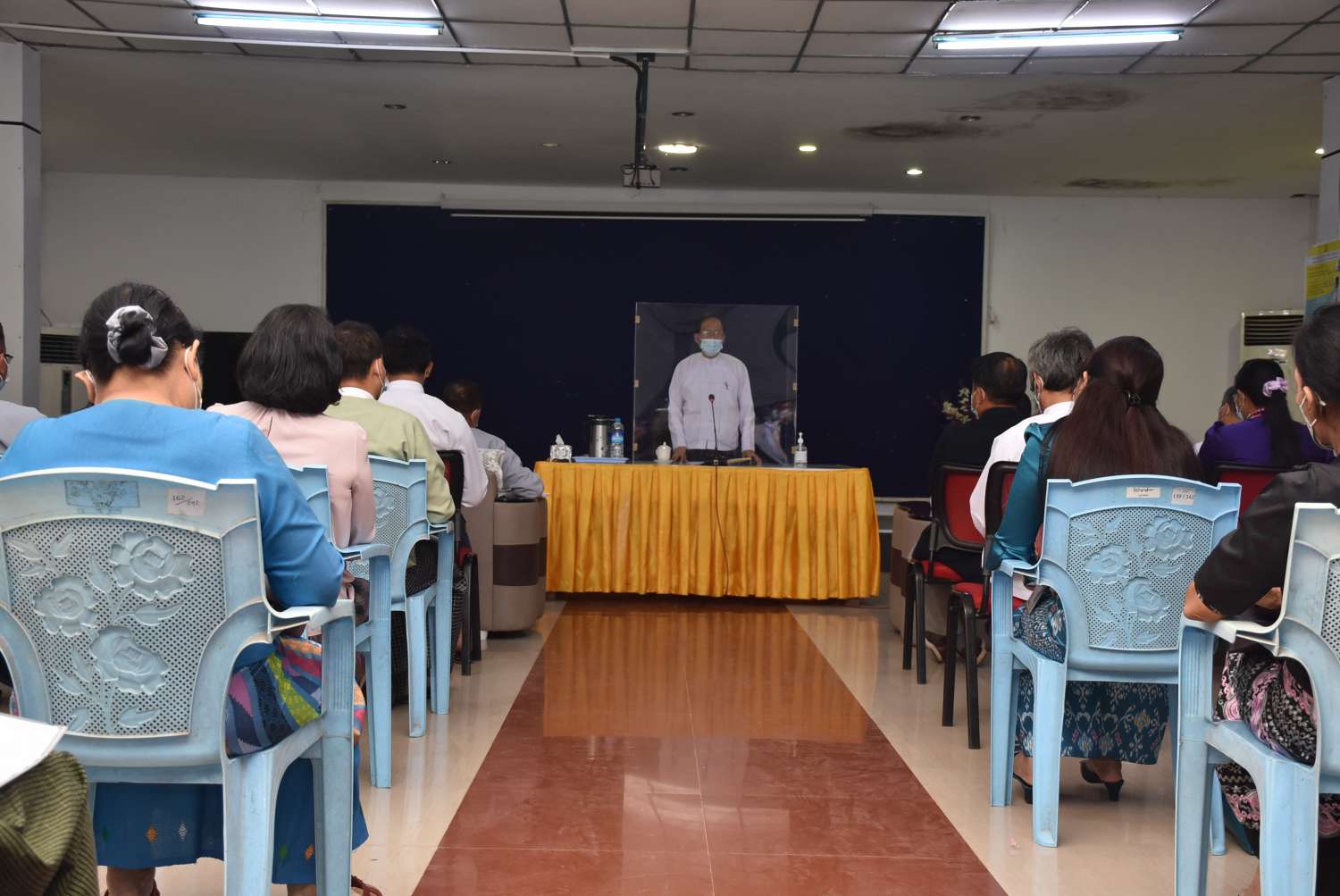 ကျန်းမာရေးဝန်ကြီးဌာန၊ ပြည်ထောင်စုဝန်ကြီး ပါမောက္ခ ဒေါက်တာသက်ခိုင်ဝင်းသည် ရန်ကုန်ပြည်သူ့ဆေးရုံကြီး၊ ပါမောက္ခချုပ် ဒေါက်တာသီတာလှ (ဆေးရုံအုပ်ကြီး/ ကုသရေး)၊ ဒေါက်တာထွန်းမင်း၊ ဒုတိယညွှန်ကြားရေးမှူးချုပ်၊ ရန်ကုန်တိုင်းဒေသကြီး ပြည်သူ့ကျန်းမာရေး နှင့်ကုသရေးဦးစီးဌာန၊ ရန်ကုန်တိုင်းဒေသကြီးအတွင်းရှိ ပြည်သူ့ဆေးရုံကြီးများမှ ဆေးရုံအုပ်ကြီး များ၊ တိုင်းဒေသကြီး/ ခရိုင်/မြို့နယ်ပြည်သူ့ ကျန်းမာရေးနှင့် ကုသရေးဦးစီး ဌာနမှူးများနှင့် ယမန်နေ့ မွန်းလွဲ ၁ နာရီခွဲတွင် ရန်ကုန်တိုင်းဒေသကြီး ပြည်သူ့ကျန်းမာရေးနှင့် ကုသရေးဦးစီးဌာန၊ အစည်းအဝေးခန်းမ၌ ကိုဗစ်-၁၉ ရောဂါကာကွယ်ထိန်းချုပ်၊ ကုသရေးအတွက် ကြိုတင်ပြင်ဆင်ခြင်း ဆိုင်ရာလုပ်ငန်းညှိနှိုင်း အစည်းအဝေးကို ဆောင်ရွက် သည်။