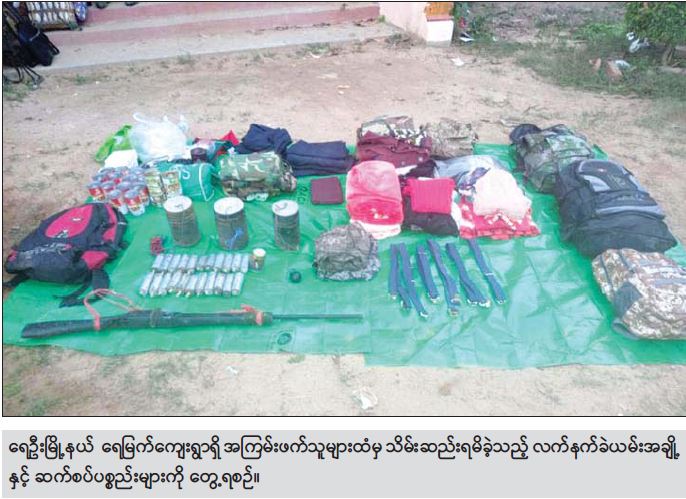 စစ်ကိုင်းတိုင်းဒေသကြီး၊ ရေဦးမြို့နယ်၊ ရေမြက်ကျေးရွာ၌ အကြမ်းဖက်လုပ်ရပ်များ လုပ်ဆောင်ရန်ရောက်ရှိနေသည့် KIA အဖွဲ့၊ NLD ပါတီဝင် အစွန်းရောက်သမားများနှင့် PDF အမည်ခံ အကြမ်းဖက်သမားများ အကြမ်းဖက်လုပ်ရပ်များ လုပ်ဆောင်ရန်အတွက် အစည်းအဝေးပြုလုပ်ရန် စုဝေးနေကြောင်းကို ကျေးရွာသူ၊ ကျေးရွာသားအချို့က လျှို့ဝှက် သတင်းပေးပို့လာခဲ့သဖြင့် လုံခြုံရေးတပ်ဖွဲ့ဝင်များ က ဒီဇင်ဘာ ၂၀ ရက် မွန်းလွဲပိုင်းတွင် ဝင်ရောက်ဖမ်းဆီးခဲ့စဉ် အကြမ်းဖက်သမား လေးဦးအား အသေဖမ်းဆီး ရမိခဲ့ပြီး ၎င်းတို့ထံမှ လက်နက်ခဲယမ်းအချို့နှင့် ဆက်စပ်ပစ္စည်းများ သိမ်းဆည်းရမိခဲ့သည်။