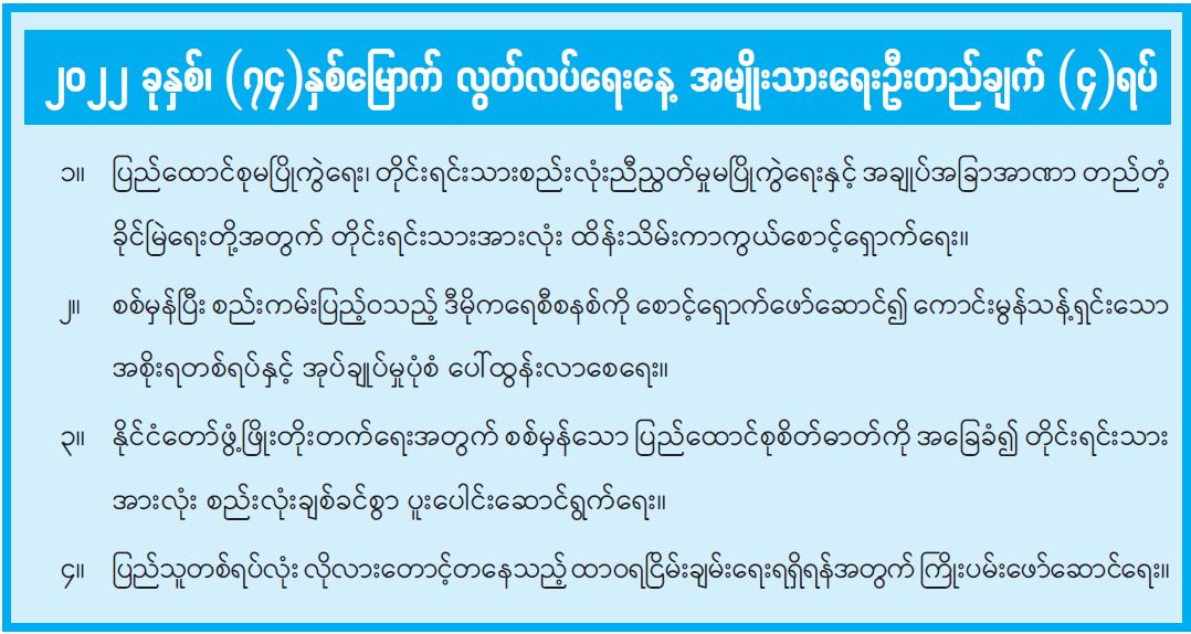 ၂၀၂၂ ခုနှစ်၊ (၇၄)နှစ်မြောက် လွတ်လပ်ရေးနေ့ အမျိုးသားရေးဦးတည်ချက် (၄)ရပ်