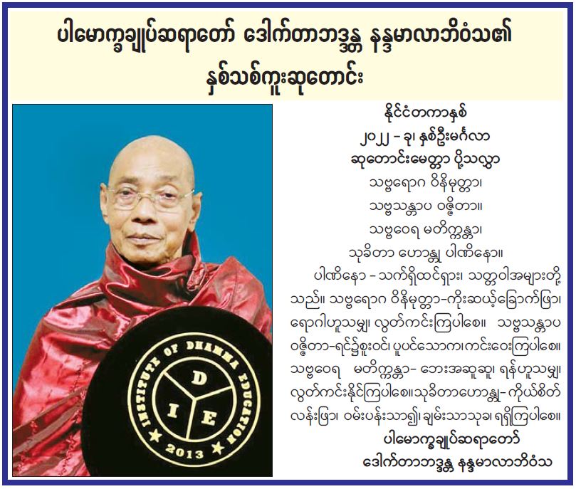 ပါမောက္ခချုပ်ဆရာတော် ဒေါက်တာဘဒ္ဒန္တ နန္ဒမာလာဘိဝံသ၏ နှစ်သစ်ကူးဆုတောင်း