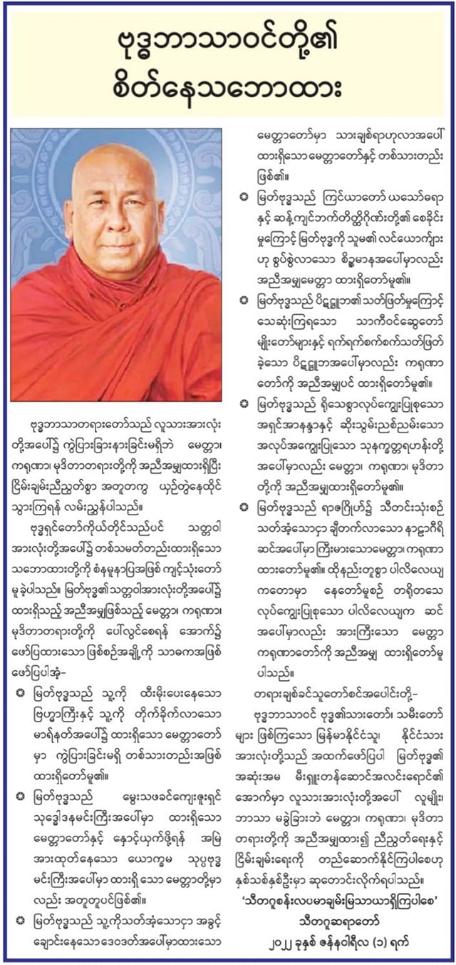 ဗုဒ္ဓဘာသာဝင်တို့၏ စိတ်နေသဘောထား