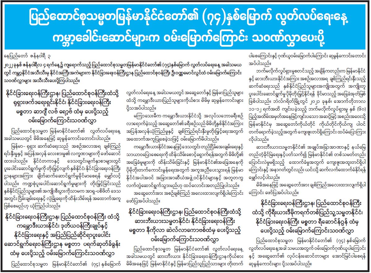 ပြည်ထောင်စုသမ္မတမြန်မာနိုင်ငံတော်၏ (၇၄)နှစ်မြောက် လွတ်လပ်ရေးနေ့ ကမ္ဘာ့ခေါင်းဆောင်များက ဝမ်းမြောက်ကြောင်း သဝဏ်လွှာပေးပို့ 01/04/2022