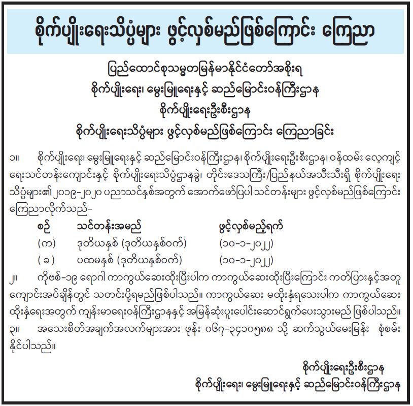 ဝန်ကြီးဌာန ကြေညာချက်များ
