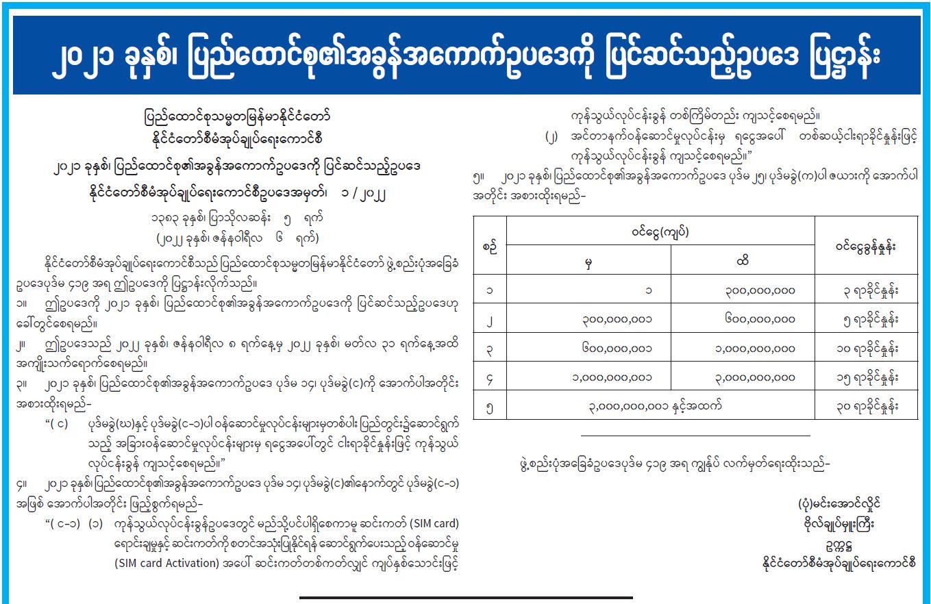 ၂၀၂၁ ခုနှစ် ပြည်ထောင်စု၏အခွန်အကောက်ဥပဒေကို ပြင်ဆင်သည့်ဥပဒေ ပြဋ္ဌာန်း