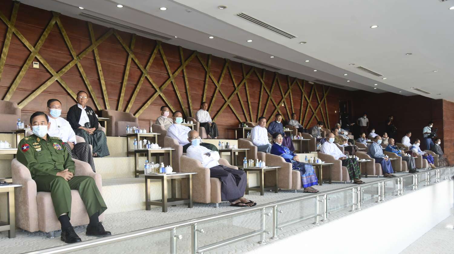 ထို့နောက် နိုင်ငံတော်စီမံအုပ်ချုပ်ရေးကောင်စီအဖွဲ့ဝင်များ၊ မြန်မာနိုင်ငံ အိုလံပစ်ကော်မတီ ဥက္ကဋ္ဌ၊ ပြည်ထောင်စုဝန်ကြီးတို့က ပြိုင်ပွဲဝင် အားကစားသမား များအား ရင်းရင်းနှီးနှီး လိုက်လံနှုတ်ဆက်ကြသည်။