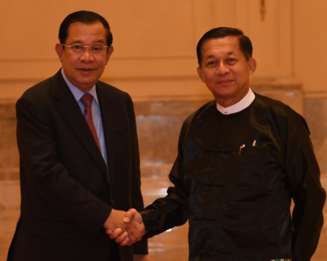 ပြည်ထောင်စုသမ္မတမြန်မာနိုင်ငံတော်၊ နိုင်ငံတော်စီမံအုပ်ချုပ်ရေးကောင်စီဥက္ကဋ္ဌ၊ နိုင်ငံတော် ဝန်ကြီးချုပ် ဗိုလ်ချုပ်မှူးကြီး မင်းအောင်လှိုင်သည် ကမ္ဘောဒီးယား နိုင်ငံဝန်ကြီးချုပ် Samdech Akka Moha Sena Padei Techo HUN SEN ဦးဆောင်သော ကိုယ်စားလှည်အဖွဲ့အား ယနေ့ညနေပိုင်းတွင် နေပြည်တော်ရှိ နိုင်ငံတော်စီမံအုပ်ချုပ်ရေးကောင်စီဥက္ကဋ္ဌရုံး၌ ဂုဏ်ပြု ညစာစားပွဲဖြင့် တည်ခင်းဧည့်ခံသည်။