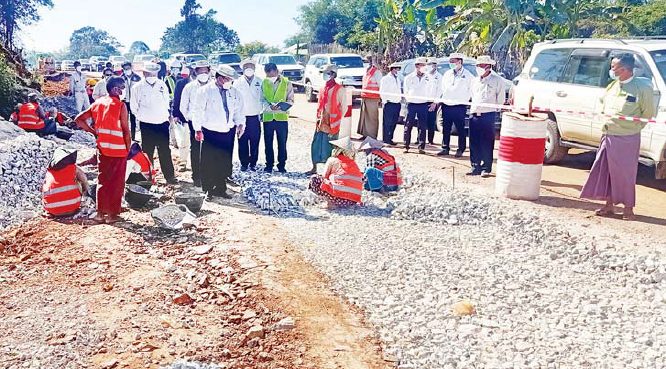 ထို့နောက် ဒုတိယဝန်ကြီးနှင့်အဖွဲ့သည် မိတ္ထီလာ - တောင်ကြီး - ကျိုင်းတုံ - တာချီလိတ်လမ်း (တာကော် - မိုင်းပျဉ်း - ကျိုင်းတုံ) လမ်းပိုင်း တွင်၂၀၂၁ ခုနှစ်မိုးရာသီအတွင်း လမ်းတံတား ပျက်စီးမှုနှင့် ပြန်လည်တည်ဆောက်နေမှုကို ကြည့်ရှုစစ်ဆေးပြီး လမ်းလုပ်သားများကို ထောက်ပံ့ငွေများ ပေးအပ်သည်။ ဆက်လက်၍ ဒုတိယဝန်ကြီးနှင့် အဖွဲ့သည် (တာကော် -မိုင်းပျဉ်း - ကျိုင်းတုံ)အပိုင်း ၄၆၈ ကီလို မီတာ- ၄၆၈ ဒသမ ၅ကီလိုမီတာအတွင်း ၀ဒသမ ၂ ကီလိုမီတာအား ၁၂ ဒသမ ၂ မီတာ အကျယ်ရရှိရန် ကျောက်တောင်လမ်းချဲ့ခြင်း လုပ်ငန်းဆောင်ရွက် နေမှုများကိုကြည့်ရှုစစ်ဆေးသည်။