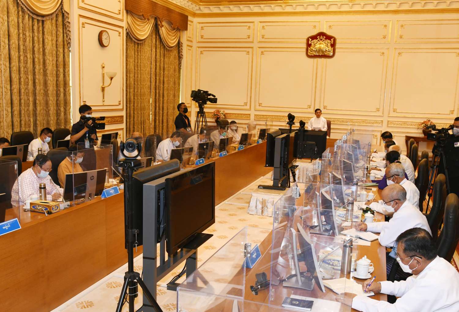 နိုင်ငံတော်စီမံအုပ်ချုပ်ရေးကောင်စီအစည်းအဝေး (၂/၂၀၂၂)ကို ယနေ့မွန်းလွဲပိုင်းတွင် နေပြည်တော်ရှိ နိုင်ငံတော်စီမံအုပ်ချုပ်ရေးကောင်စီဥက္ကဋ္ဌရုံး အစည်းအဝေး ခန်းမ၌ကျင်းပရာ နိုင်ငံတော်စီမံအုပ်ချုပ်ရေး ကောင်စီဥက္ကဋ္ဌ၊ နိုင်ငံတော်ဝန်ကြီးချုပ် ဗိုလ်ချုပ်မှူးကြီး မင်းအောင်လှိုင် တက်ရောက်ပြီး နိုင်ငံတော် စီမံအုပ်ချုပ်ရေး ကောင်စီ၏ တစ်နှစ်တာဆောင်ရွက်ချက်များနှင့် စပ်လျဉ်း၍ ရှင်းလင်း ပြောကြားသည်။