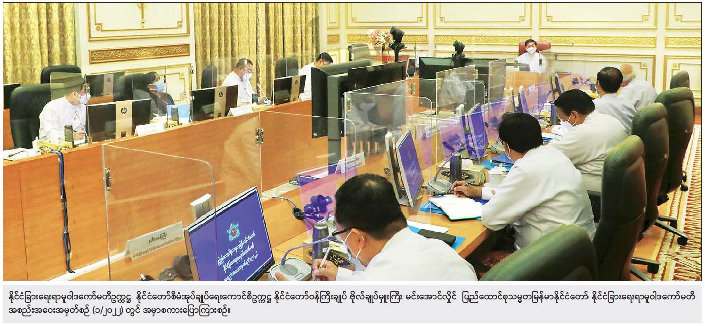 ပြည်ထောင်စုသမ္မတမြန်မာနိုင်ငံတော် နိုင်ငံခြားရေးရာမူဝါဒကော်မတီ အစည်း အဝေးအမှတ်စဉ် (၁/၂၀၂၂)အား ယနေ့ မွန်းလွဲပိုင်းတွင် နေပြည်တော်ရှိ နိုင်ငံတော် စီမံအုပ်ချုပ်ရေးကောင်စီဥက္ကဋ္ဌရုံး အစည်းအဝေးခန်းမ၌ကျင်းပရာ နိုင်ငံခြားရေးရာ မူဝါဒကော်မတီ ဥက္ကဋ္ဌ နိုင်ငံတော်စီမံအုပ်ချုပ်ရေး ကောင်စီဥက္ကဋ္ဌ နိုင်ငံတော်ဝန်ကြီးချုပ် ဗိုလ်ချုပ်မှူးကြီး မင်းအောင်လှိုင် တက်ရောက်အမှာစကား ပြောကြားသည်။