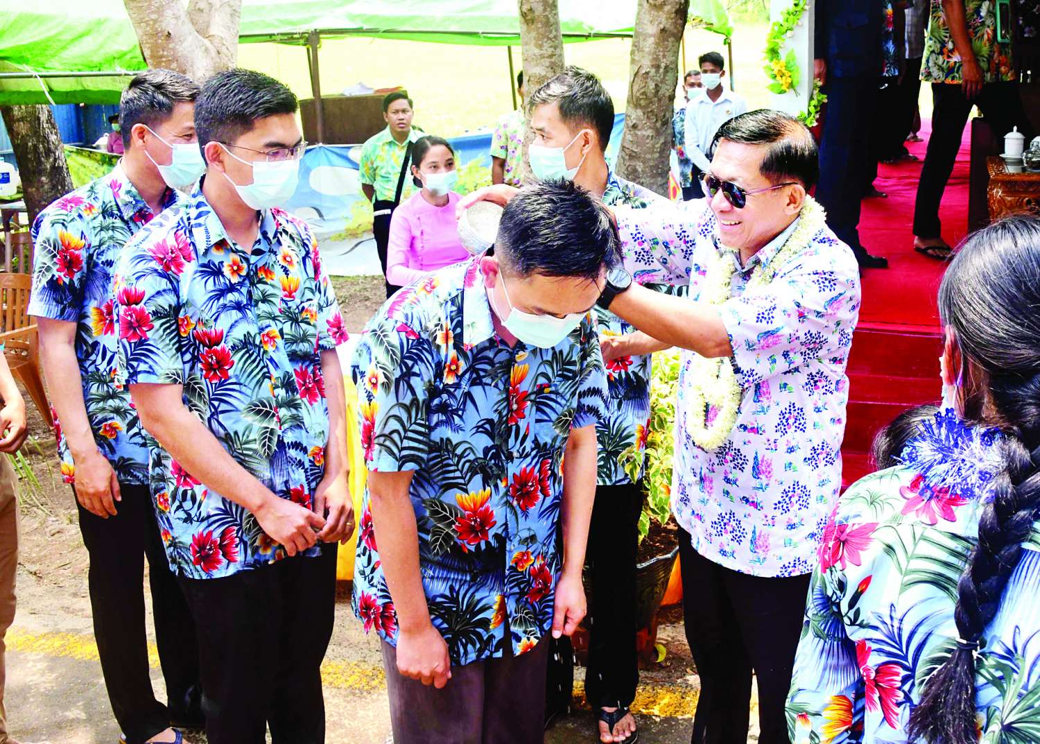 မြန်မာသက္ကရာဇ် ၁၃၈၄ ခုနှစ်၊ မြန်မာ့ရိုးရာမဟာအတာသင်္ကြန် အကြတ်နေ့ဖြစ်သည့် ယနေ့တွင် နိုင်ငံတော်စီမံအုပ်ချုပ်ရေးကောင်စီဥက္ကဋ္ဌ၊ တပ်မတော်ကာကွယ်ရေးဦးစီးချုပ် ဗိုလ်ချုပ်မှူးကြီး မင်းအောင်လှိုင်နှင့် ဇနီးဒေါ်ကြူကြူလှတို့သည် ကာကွယ်ရေးဦးစီး ချုပ်ရုံး(ကြည်း)မှ တပ်မတော် အရာရှိကြီးများ၊ အလယ်ပိုင်းတိုင်းစစ်ဌာနချုပ် တိုင်းမှူး ဗိုလ်ချုပ် ကိုကိုဦးနှင့် အဖွဲ့ဝင်များလိုက်ပါ၍ ပြင်ဦးလွင်တပ်နယ်ရှိ သင်တန်းကျောင်းများနှင့် တပ်ရင်း၊ တပ်ဖွဲ့များ၏ မိသားစုရေသဘင်မဏ္ဍပ်များ၌ အရာရှိ၊ စစ်သည်၊ မိသားစုဝင်များ၏ ပျော်ရွှင်စွာ ရေသဘင်ပွဲတော် ဆင်နွှဲနေမှုများကို သွားရောက်ကြည့်ရှုအားပေးသည်။