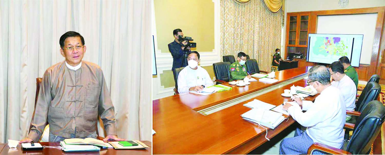 ယင်းနောက် နိုင်ငံတော်စီမံအုပ်ချုပ်ရေးကောင်စီ ဥက္ကဋ္ဌ နိုင်ငံတော်ဝန်ကြီးချုပ်က စိုက်ပျိုးရေးလုပ်ငန်းများအတွက် နွေရာသီ၌ ရေလိုအပ်ချက်များရှိကြောင်း၊ အဆိုပါ ရေလိုအပ်ချက်ကိုဖြည့်ဆည်းပေးနိုင်ရေး လျှပ်စစ်မြစ်ရေတင်လုပ်ငန်းများနှင့် နေရောင် ခြည်စွမ်းအင်သုံး မြစ်ရေတင်လုပ်ငန်းများကို အသေးစားမြစ်ရေတင်လုပ်ငန်းများဖြင့် ဆောင်ရွက်မည်ဆိုပါက ငွေကြေးကုန်ကျမှုများလည်း သက်သာမည်ဖြစ်ကြောင်း၊ ရေကိုလည်းလိုအပ်သလောက်သာ အကျိုးရှိစွာဖြင့်အသုံးချရန်လိုကြောင်း၊ စိုက်ပျိုးရေးကို အခြေခံသည့် စီးပွားရေးလုပ်ငန်းများကို အဓိကဆောင်ရွက်ရမည်ဖြစ်ကြောင်း၊ အဓိကသီးနှံဖြစ်သည့် စပါး၊ ပြောင်း၊ ပဲနှင့် ဆီထွက်သီးနှံများရှိသည့်အနက် နေပြည်တော်နယ်မြေအတွင်း စပါးကို အဓိကထားစိုက်ပျိုးမည်ဆိုပါက တတ်နိုင်သမျှ မျိုးအနည်းဆုံးဖြစ်စေရန်နှင့် အထွက်နှုန်းတိုးအောင် ဆောင်ရွက်ရန်လိုကြောင်း၊ နိုင်ငံတော်မှသတ်မှတ်ထားသည့် အထွက်နှုန်းများအတိုင်း ပြည့်မီစေရန်အတွက် ကြိုးစားစိုက်ပျိုးရန်လိုကြောင်း၊ မျိုးကောင်းမျိုးသန့်ရရှိရေး၊ မြေဩဇာနှင့်သဘာဝ မြေဩဇာများရရှိရေးနှင့် အောင်ရေ ရရှိရေးတို့အတွက် သက်ဆိုင်ရာကဏ္ဍအလိုက် တာဝန်ရှိသူများက ဖြည့်ဆည်းဆောင်ရွက် ပေးရန်လိုကြောင်း၊ သဘာဝမြေဩဇာ ရရှိရေးအတွက် ကျွဲ၊ နွားမွေးမြူရေးလုပ်ငန်းများ မှထွက်ရှိသည့် ဇီဝမြေဩဇာများ ကိုလည်း အကျိုးရှိစွာအသုံးချ၍ရကြောင်း၊ ထို့ကြောင့် ကျွဲ၊ နွားများ မွေးမြူရာတွင်လှောင်မွေးသည့်စနစ်ဖြင့် စနစ်တကျမွေးမြူရန်လိုကြောင်း၊ စိုက်ပျိုးရေးလုပ်ငန်းများမှ ထွက်ရှိသည့် ထွက်ကုန်များမှ တိရစ္ဆာန်အစာများလည်းထွက်ရှိသဖြင့် မွေးမြူရေး လုပ်ငန်းအတွက်လိုအပ်သည့် တိရစ္ဆာန်အစာများ လုံလောက်စွာရရှိမည်ဖြစ်ကြောင်း။