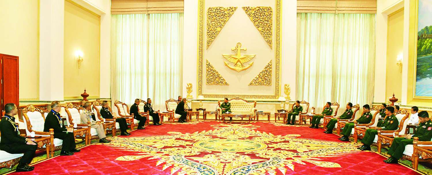 နိုင်ငံတော်စီမံအုပ်ချုပ်ရေးကောင်စီဥက္ကဋ္ဌ တပ်မတော်ကာကွယ်ရေးဦးစီးချုပ် ဗိုလ်ချုပ်မှူးကြီး မင်းအောင်လှိုင်အား ထိုင်းဘုရင့်တပ်မတော်မှ Lt.Gen. Apichet Suesat ဦးဆောင်သည့် ကိုယ်စားလှယ်အဖွဲ့ လာရောက်ဂါရဝပြုတွေ့ဆုံ