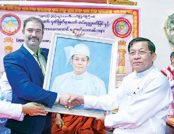 ထို့နောက် ရုရှား ရှုခင်းပန်းချီပညာရှင် Mr. Alexander Alexandrovich Shilov က ၎င်းကိုယ်တိုင်ရေးဆွဲထားသည့် နိုင်ငံတော်စီမံအုပ်ချုပ်ရေးကောင်စီဥက္ကဋ္ဌ၊ နိုင်ငံတော် ဝန်ကြီးချုပ်၏ ပုံတူပန်းချီကားချပ်ကို အမှတ်တရလက်ဆောင်အဖြစ်ပေးအပ်သည်။
