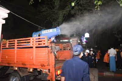 ရန်ကုန်မြို့တော်စည်ပင်သာယာရေးကော်မတီ ပတ်ဝန်းကျင်ထိန်းသိမ်းရေးနှင့်သန့်ရှင်းရေးဌာနမှ ဌာနမှူးဦးဆောင်၍ ယမန်နေ့ည ၉ နာရီက ကိုရိုနာဗိုင်းရပ်(စ်)ရောဂါ ကာကွယ်ထိန်းချုပ်နိုင်ရေးနှင့် ကြိုတင်ကာကွယ်နိုင်ရေးအတွက် ရန်ကုန်ပြည်သူဆေးရုံကြီး အတွင်းအပြင် နေရာများဆေးဖျန်းရာ စည်ပင်သာယာရေးဝန်ကြီး ရန်ကုန်မြို့တော်ဝန် ဦးမောင်မောင်စိုး၊ ဒုတိယမြို့တော်ဝန် ဦးစိုးလွင်နှင့် တာဝန်ရှိသူများက ကြည့်ရှုစစ်ဆေးခဲ့ကြသည်။