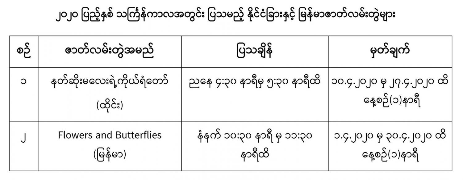 မြန်မာ့ရိုးရာမဟာသင်္ကြန် ရုံးပိတ်ရက်ကာလအတွင်း မြန်မာ့အသံနှင့် ရုပ်မြင်သံကြားမှ အထူးအစီအစဉ်များ ပြသသွားမည်