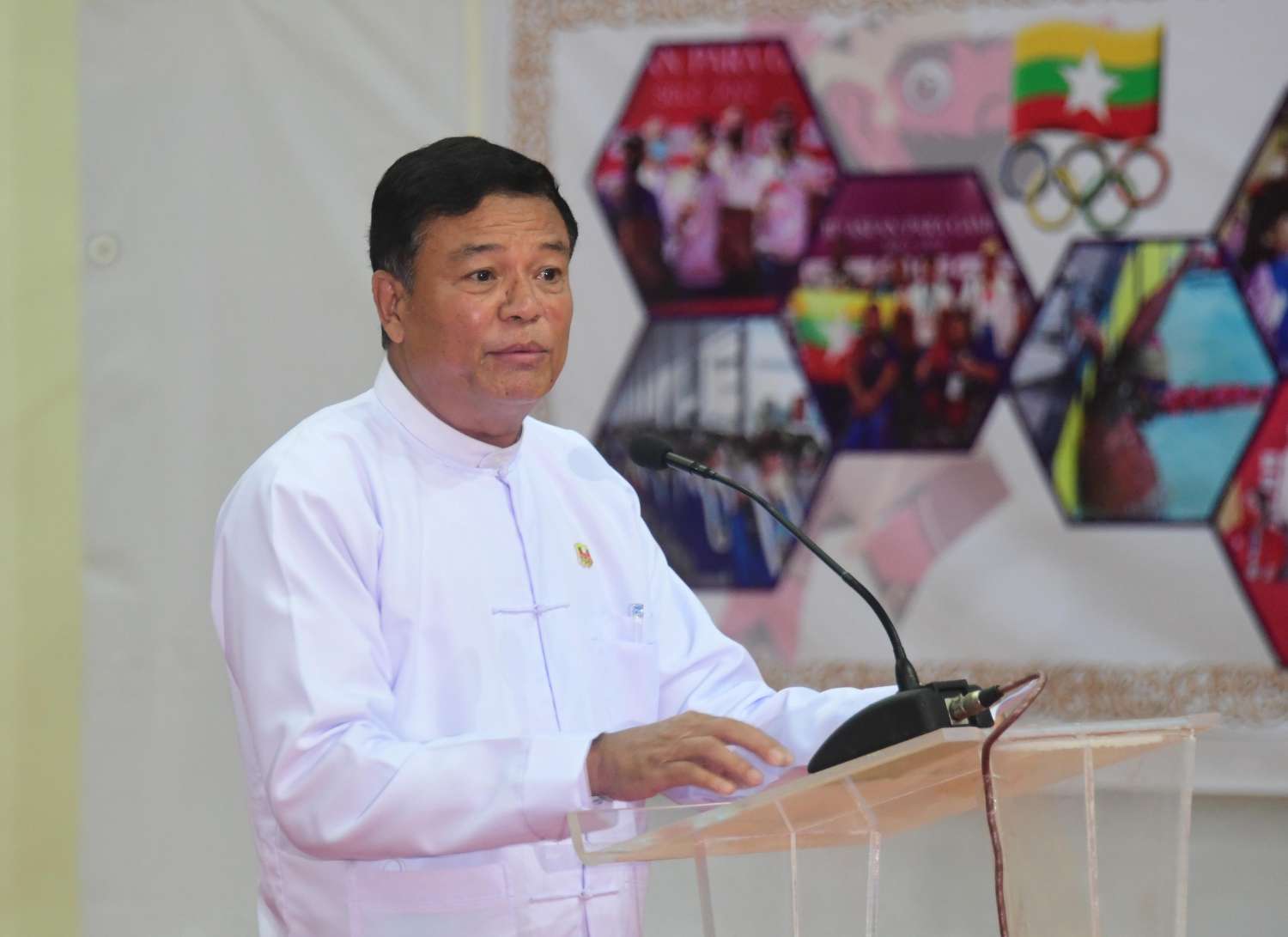 ယင်းနောက် အားကစားနှင့် လူငယ်ရေးရာဝန်ကြီးဌာန ပြည်ထောင်စုဝန်ကြီး ဦးမင်းသိန်းဇံက (၁၁)ကြိမ်မြောက် အာဆီယံမသန်စွမ်းသူများ အားကစားပြိုင်ပွဲ ၀င်ရောက်ယှဉ်ပြိုင်ခဲ့မှု အခြေအနေများကို ရှင်းလင်းတင်ပြသည်။