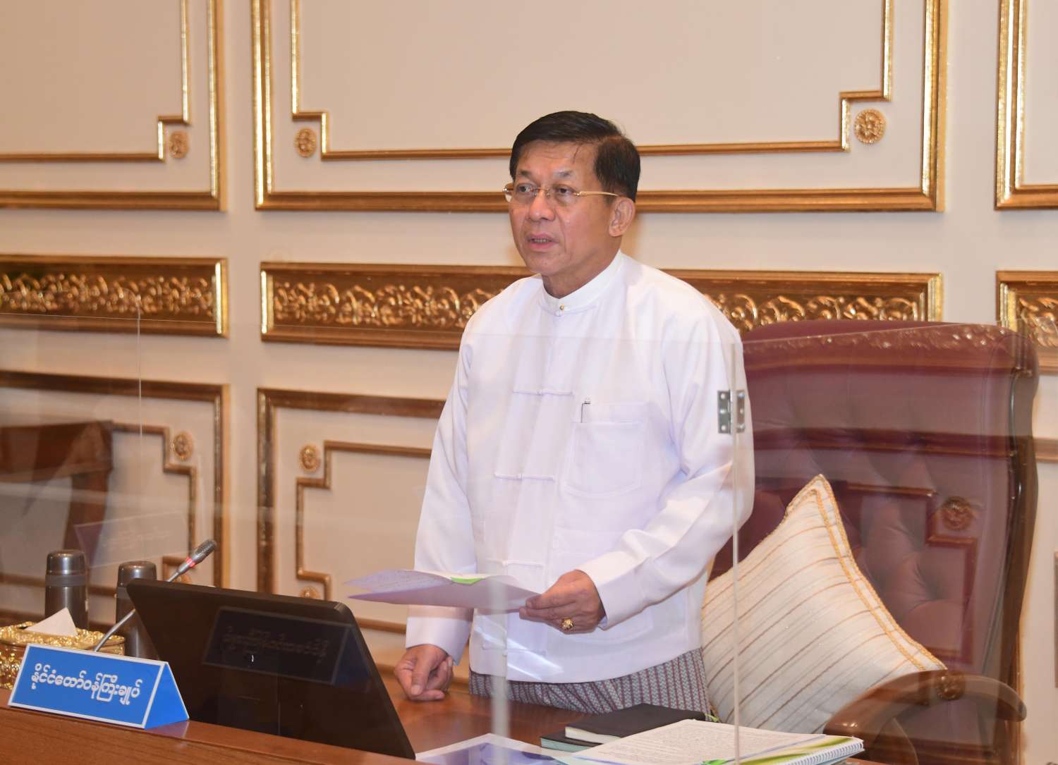 ပြည်ထောင်စုသမ္မတမြန်မာနိုင်ငံတော် အသေးစား၊ အငယ်စားနှင့် အလတ်စား စီးပွားရေးလုပ်ငန်းများ ဖွံ့ဖြိုးတိုးတက်ရေးဗဟိုကော်မတီ (၁/၂၀၂၂)ကို ယနေ့မွန်းလွဲပိုင်းတွင် နေပြည်တော်ရှိ နိုင်ငံတော်စီမံအုပ်ချုပ်ရေးကောင်စီဥက္ကဋ္ဌရုံး၊ အစည်းအဝေးခန်းမ၌ ကျင်းပပြုလုပ်ရာ အသေးစား၊ အငယ်စားနှင့် အလတ်စား စီးပွားရေးလုပ်ငန်းများ ဖွံ့ဖြိုးတိုးတက်ရေးဗဟိုကော်မတီဥက္ကဋ္ဌ နိုင်ငံတော်စီမံအုပ်ချုပ်ရေးကောင်စီဥက္ကဋ္ဌ နိုင်ငံတော်ဝန်ကြီးချုပ် ဗိုလ်ချုပ်မှူးကြီး မင်းအောင်လှိုင် တက်ရောက်အမှာစကား ပြောကြားသည်။