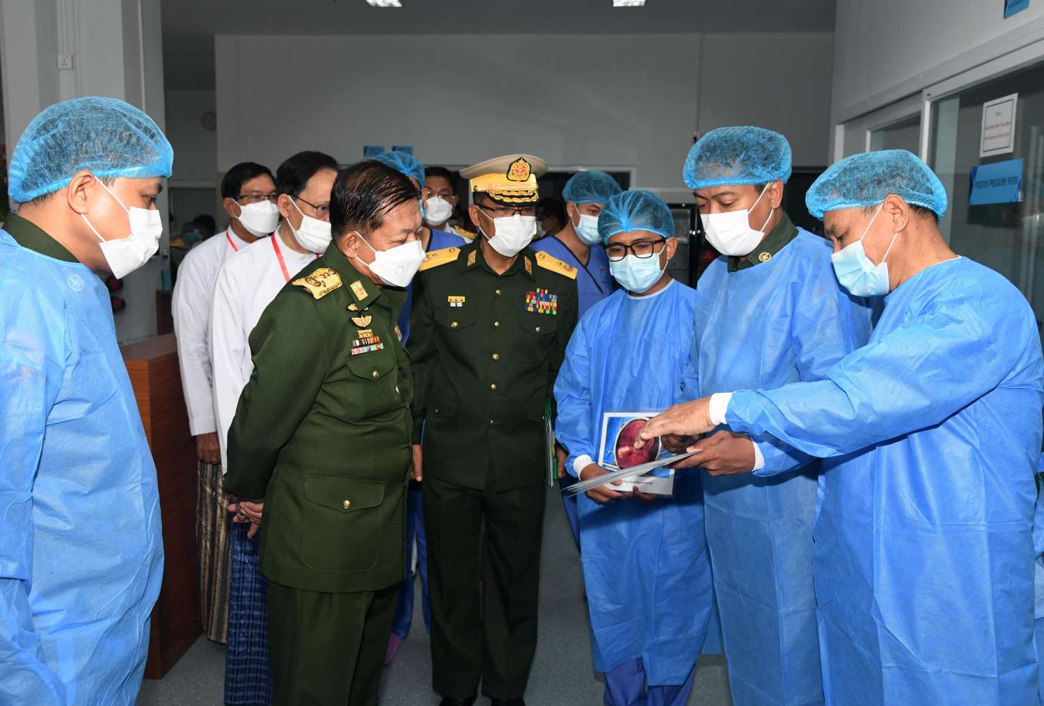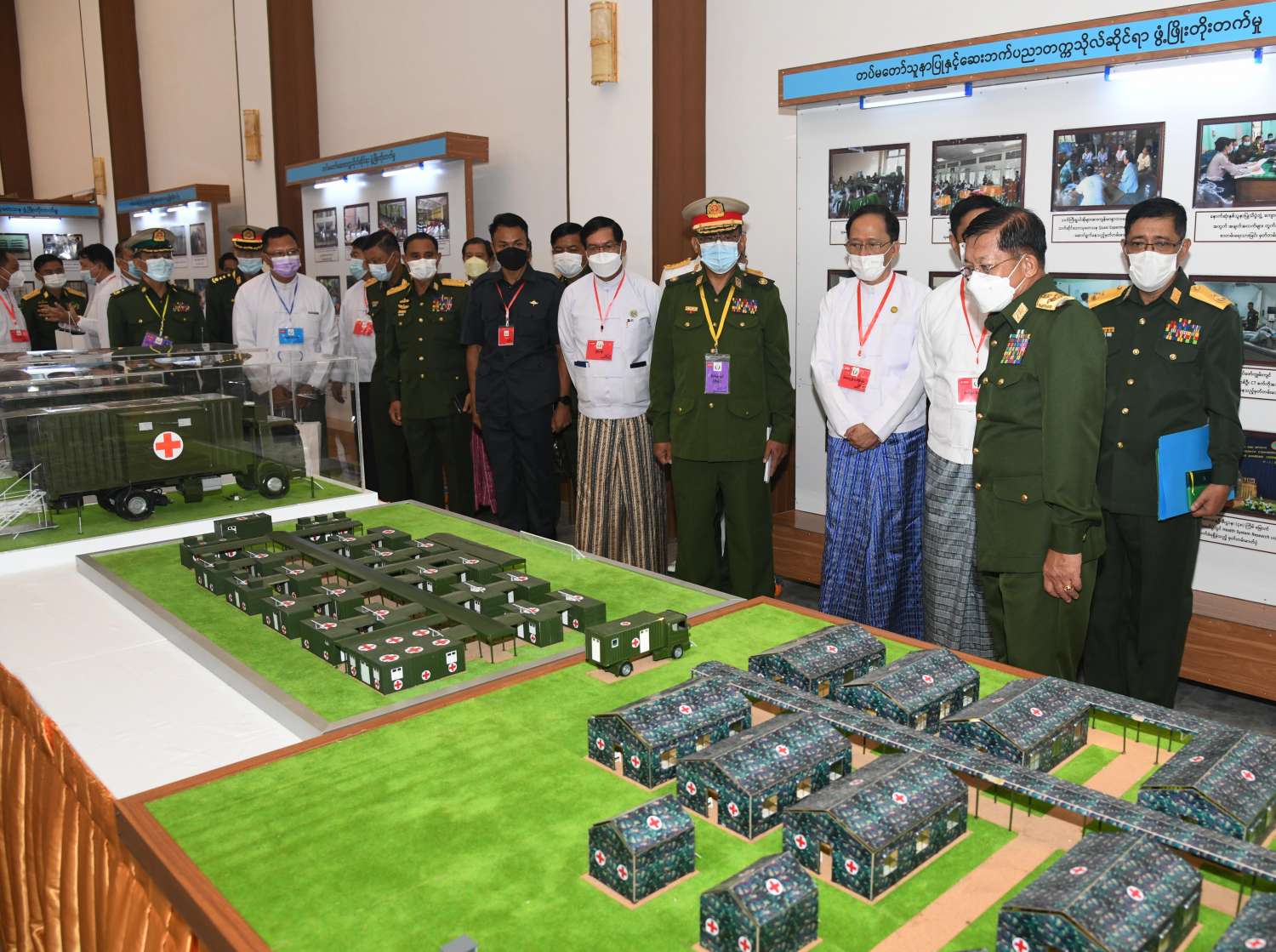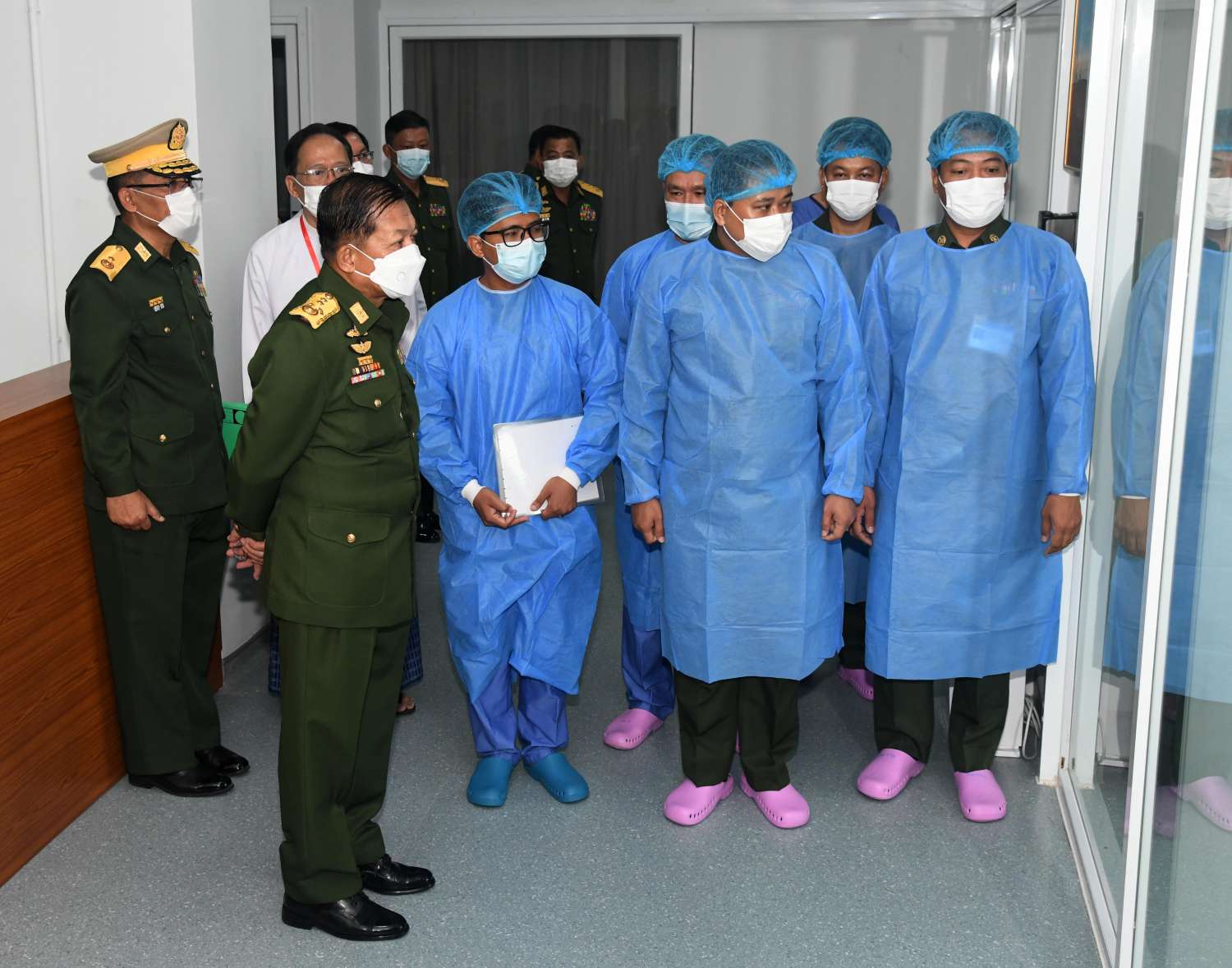 တပ်မတော် ဆေးရုံ/ ဆေးတပ် ၆၇ ခုနှင့် ကိုဗစ်ကုသမှုစင်တာ ၅၄ ခုတို့ကို ဖွင့်လှစ်ပြီး ပြည်သူလူထုကိုလည်း ကုသမှုများပေးနိုင်ခဲ့သည်ကို တွေ့ရှိရပါကြောင်း၊ ထိုသို့ကုသပေးခဲ့ရာတွင် ၂၀၂၂ ခုနှစ်၊ စက်တင်ဘာလ ၁၅ ရက်နေ့အထိ ကိုဗစ်အတည်ပြုလူနာ သံဃာတော် ၁,၅၀၅ ဦး၊ သီလရှင် ၁၀၈ ဦး၊ အရပ်သား ၁၆,၀၅၄ ဦး နှင့် နိုင်ငံခြားသား ၁၃၅ ဦး၊ စုစုပေါင်း ၁၇,၈၀၂ ဦးကို ပြုစုစောင့်ရှောက်မှုပေးနိုင်ခဲ့သည်ကို တွေ့ရမည်ဖြစ်ကြောင်း၊ ကျန်းမာရေးဝန်ကြီးဌာနနှင့် အခြားဝန်ကြီးဌာနများ၏ လိုအပ်ချက်အရ ဆေးဝန်ထမ်းတပ်ဖွဲ့ဝင်များကို လွှဲပြောင်းတာဝန်ပေးနိုင်ခဲ့သည်ကိုလည်း ဂုဏ်ယူဝမ်းမြောက်ဖွယ်ရာ တွေ့ရှိရပါကြောင်း။
