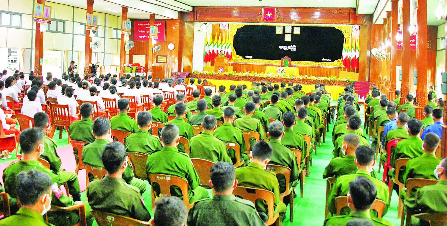 မိမိတို့နိုင်ငံသည် ပါတီစုံဒီမိုကရေစီစနစ်ပေါ်တွင် လျှောက်လှမ်းလျက်ရှိပြီး နိုင်ငံ ရေးအရ သဘောထားကွဲလွဲမှုများကြောင့် ပါတီတစ်ခုနှင့်တစ်ခု၊ အဖွဲ့တစ်ခုနှင့်တစ်ခု နိုင်ငံရေးအရ တိုက်ခိုက်ခြင်းများရှိကြောင်း၊ ထိုသို့ဖြစ်ပေါ်ရခြင်းမှာ နိုင်ငံရေးအရ မရင့်ကျက်ခြင်းများကြောင့် ဖြစ်ပြီး တပ်မတော်သည် ခိုင်မာသည့်အဖွဲ့ အစည်းတစ်ခုဖြစ်သဖြင့် တပ်မတော်၏ ထောက်ခံမှုများကို လိုလားကြကြောင်း၊ သို့သော် အချို့သော အဖွဲ့များက တပ်မတော်အင်အားချိနဲ့စေရန် တိုက်ခိုက်မှုများ ရှိခဲ့ကြောင်း၊ ၂၀၂၀ ပြည့်နှစ်ပါတီစုံဒီမိုကရေစီ အထွေထွေရွေးကောက်ပွဲတွင် မဲမသမာမှုများကြောင့် နိုင်ငံ ရေး ပြဿနာများဖြစ်ပေါ်ခဲ့ပြီး အခြေခံဥပဒေအရ တပ်မတော်မှ နိုင်ငံတော်တာဝန်ကို ထမ်းဆောင်ခဲ့ရကြောင်း၊ ထို့ကြောင့် တပ်တွင်းစည်းလုံးညီညွတ်ရေးကို ပြိုကွဲစေရန်နှင့် တပ်မတော်၏ အင်အားကို ချိနဲ့စေရန်ကြိုးပမ်းဆောင်ရွက်လာမှု များရှိလာခဲ့သည်ကို တွေ့ရှိကြရမည်ဖြစ်ကြောင်း၊ ခေါင်းဆောင်မှုမှန်ကန်ပြီး တပ်မတော်အတွင်း စည်းလုံးညီညွတ်မှုရှိနေသည့် ကာလတစ်လျှောက်လုံး တိုင်းပြည်ကို ဖြိုခွဲ၍ရနိုင်မည် မဟုတ်ကြောင်း၊ တပ်မတော်အနေဖြင့် တပ်တွင်းစည်းလုံးညီညွတ်ရေးကို ယခင်ကတည်းက ဆောင်ရွက်ခဲ့ပြီး သက်သာချောင်ချိရေး လုပ်ငန်းများ၊ တပ်တည်ဆောက်ရေး လုပ်ငန်းများနှင့် လေ့ကျင့်ရေးလုပ်ငန်းများကို အမြဲမပြတ်ဆောင် ရွက်ခဲ့ကြောင်း၊ လေ့ကျင့်ရေး၊ အုပ်ချုပ်ရေး၊ သက်သာချောင်ချိရေး၊ စိတ်ဓာတ် စသည်တို့ဖြင့် တပ်တည်ဆောက်ရေး လုပ်ငန်း များကို ဆောင်ရွက်ခဲ့ကြောင်း။