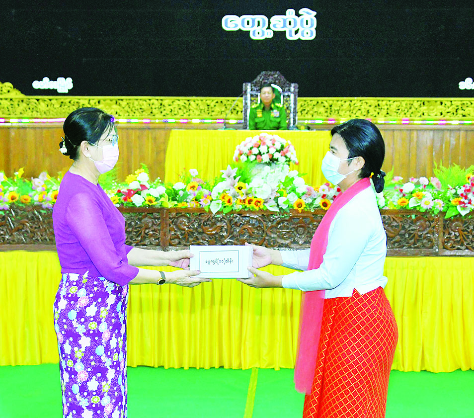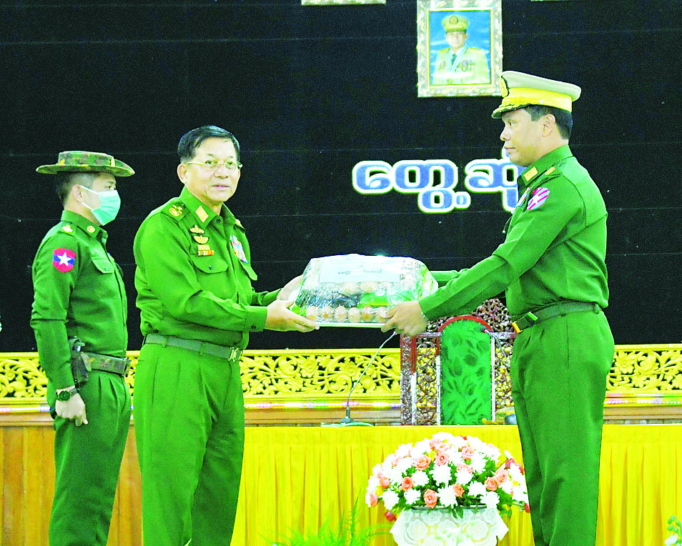 ထို့နောက် နိုင်ငံတော်စီမံအုပ်ချုပ်ရေးကောင်စီဥက္ကဋ္ဌ တပ်မတော်ကာကွယ်ရေး ဦးစီးချုပ်သည် အရာရှိ၊ စစ်သည်၊ မိသားစုများအတွက် စားသောက်ဖွယ်ရာပစ္စည်းများကိုပေးအပ်ရာ တိုင်းမှူးက လည်းကောင်း၊ နိုင်ငံတော်စီမံအုပ်ချုပ်ရေးကောင်စီဥက္ကဋ္ဌ၊ တပ်မတော်ကာကွယ်ရေး ဦးစီးချုပ်၏ဇနီးက တပ်နယ် မိခင်နှင့်ကလေး စောင့်ရှောက်ရေးအသင်းအတွက် ချီးမြှင့်ငွေများကို ပေးအပ်ရာ တိုင်းမှူး၏ ဇနီးကလည်းကောင်း အသီးသီး လက်ခံရယူကြသည်။
