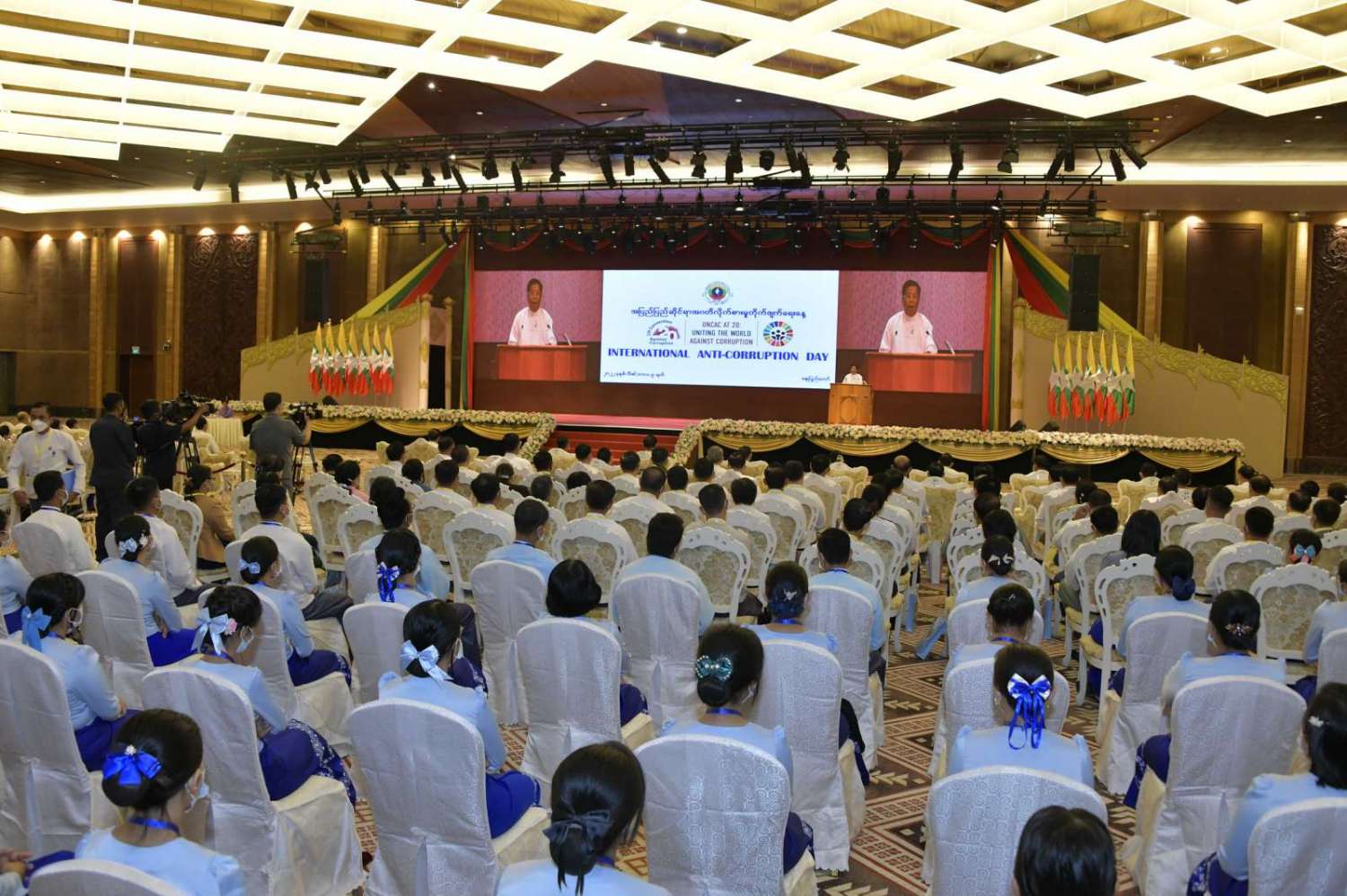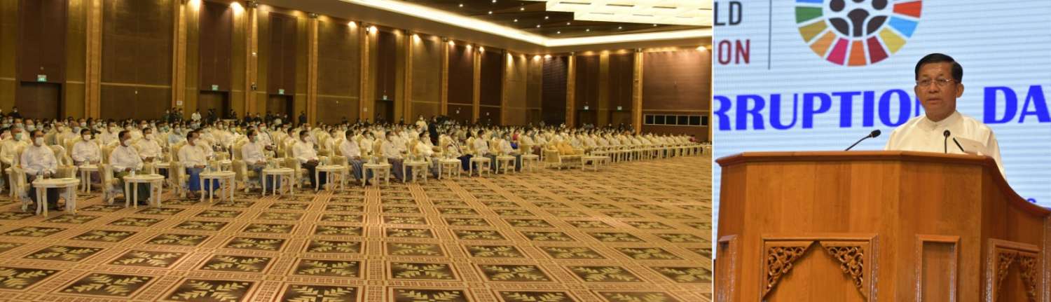 အပြည်ပြည်ဆိုင်ရာ အဂတိလိုက်စားမှုတိုက်ဖျက်ရေးနေ့အခမ်းအနားကို ယနေ့နံနက်ပိုင်းတွင် နေပြည်တော်ရှိ မြန်မာအပြည်ပြည်ဆိုင်ရာကွန်ဗင်းရှင်း ဗဟိုဌာန-၁ ၌ ကျင်းပပြုလုပ်ရာ နိုင်ငံတော်စီမံအုပ်ချုပ်ရေးကောင်စီဥက္ကဋ္ဌ နိုင်ငံတော်ဝန်ကြီးချုပ် ဗိုလ်ချုပ်မှူးကြီး မင်းအောင်လှိုင် တက်ရောက်အမှာစကားပြောကြားသည်။