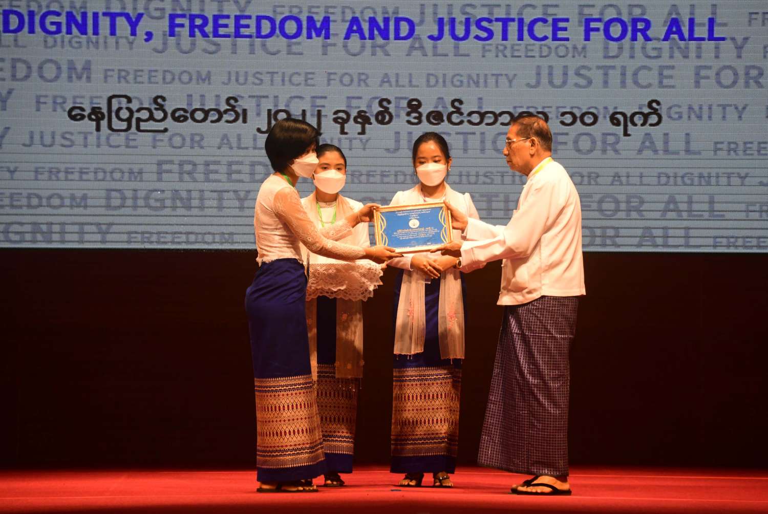 ထို့နောက် မြန်မာနိုင်ငံအမျိုးသားလူ့အခွင့်အရေးကော်မရှင်ဥက္ကဋ္ဌက (၇၄) နှစ်မြောက် အပြည်ပြည်ဆိုင်ရာလူ့အခွင့်အရေးနေ့အထိမ်းအမှတ် ကဗျာ၊ ကာတွန်း၊ ဆောင်းပါးပြိုင်ပွဲများတွင် ဆုရရှိသူများကို ဆုများပေးအပ်ချီးမြှင့်သည်။